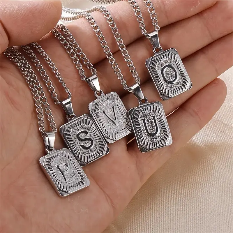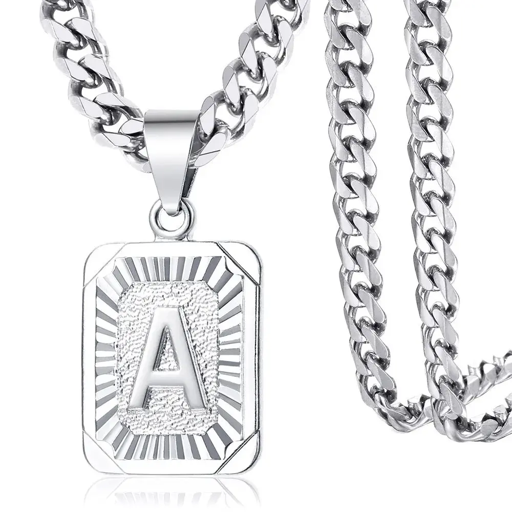 Jewelfairy Silver Color Square Initial Letter A-Z Pendant Necklace for Men Women 3/5mm Stainless Steel Cuban Chain Name Pendant NecklaceJewelfairy Silver Color Square Initial Letter A-Z Pendant Necklace for Men Women 3/5mm Stainless Steel Cuban Chain Name Pendant NecklaceJewelfairy Silver Color Square Initial Letter A-Z Pendant Necklace for Men Women 3/5mm Stainless Steel Cuban Chain Name Pendant Necklace