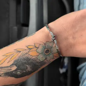 I love this Bracelet it’s so pretty and shiny and silver but the footprints has these little rhinestones on them. Oh it’s so beautiful. I love it.