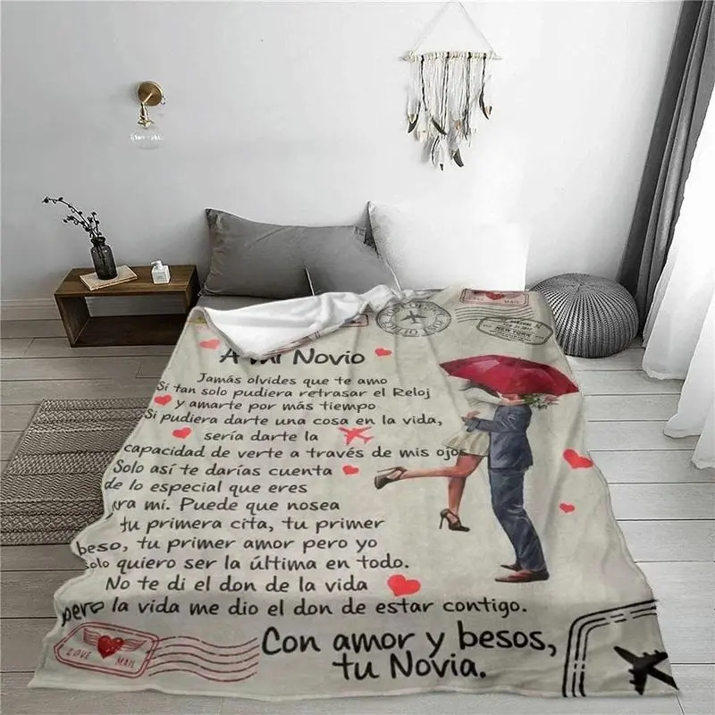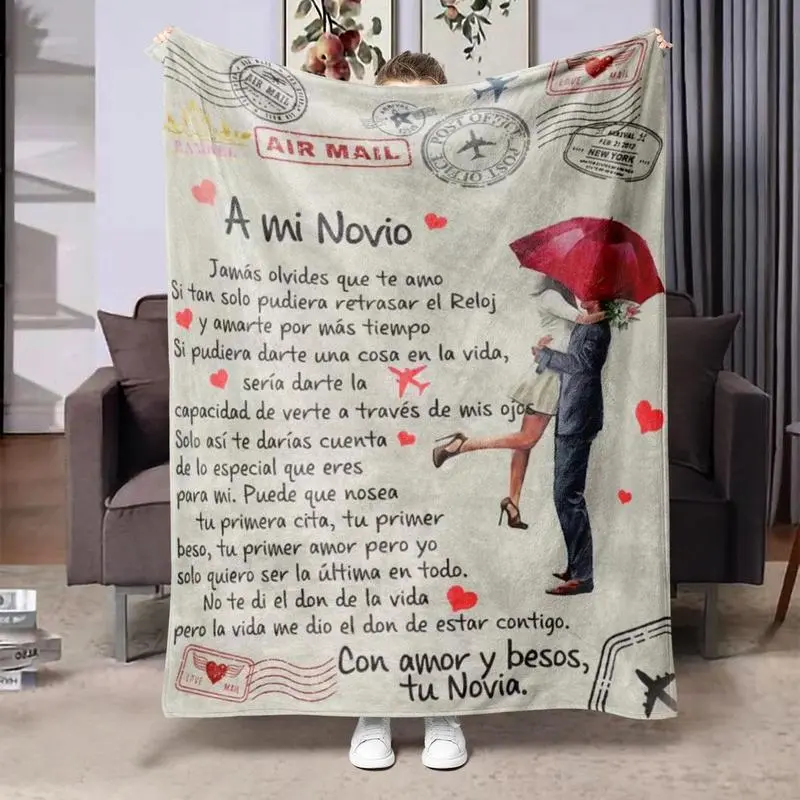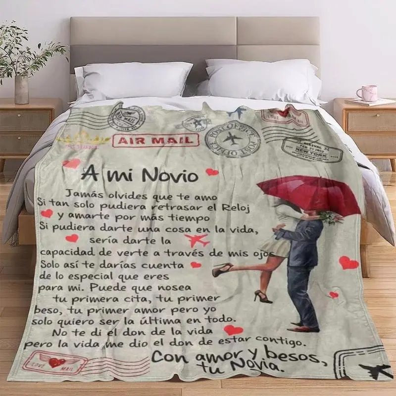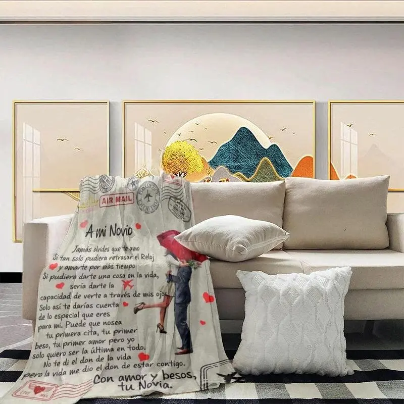 Letters and couple pattern flannel blankets, slogan printed blankets, soft and warm blankets, air-conditioned room blankets, warm nap blankets for home office trips