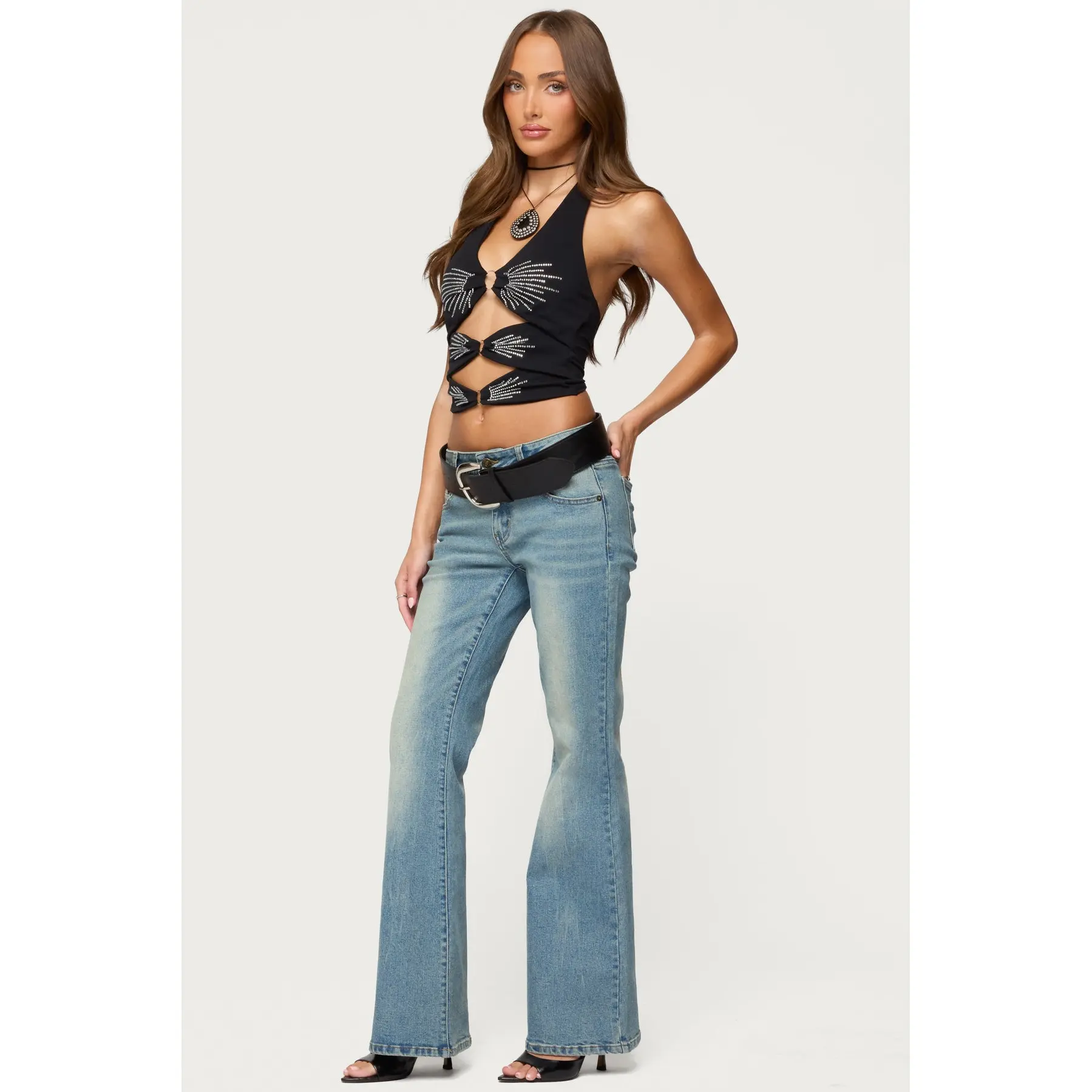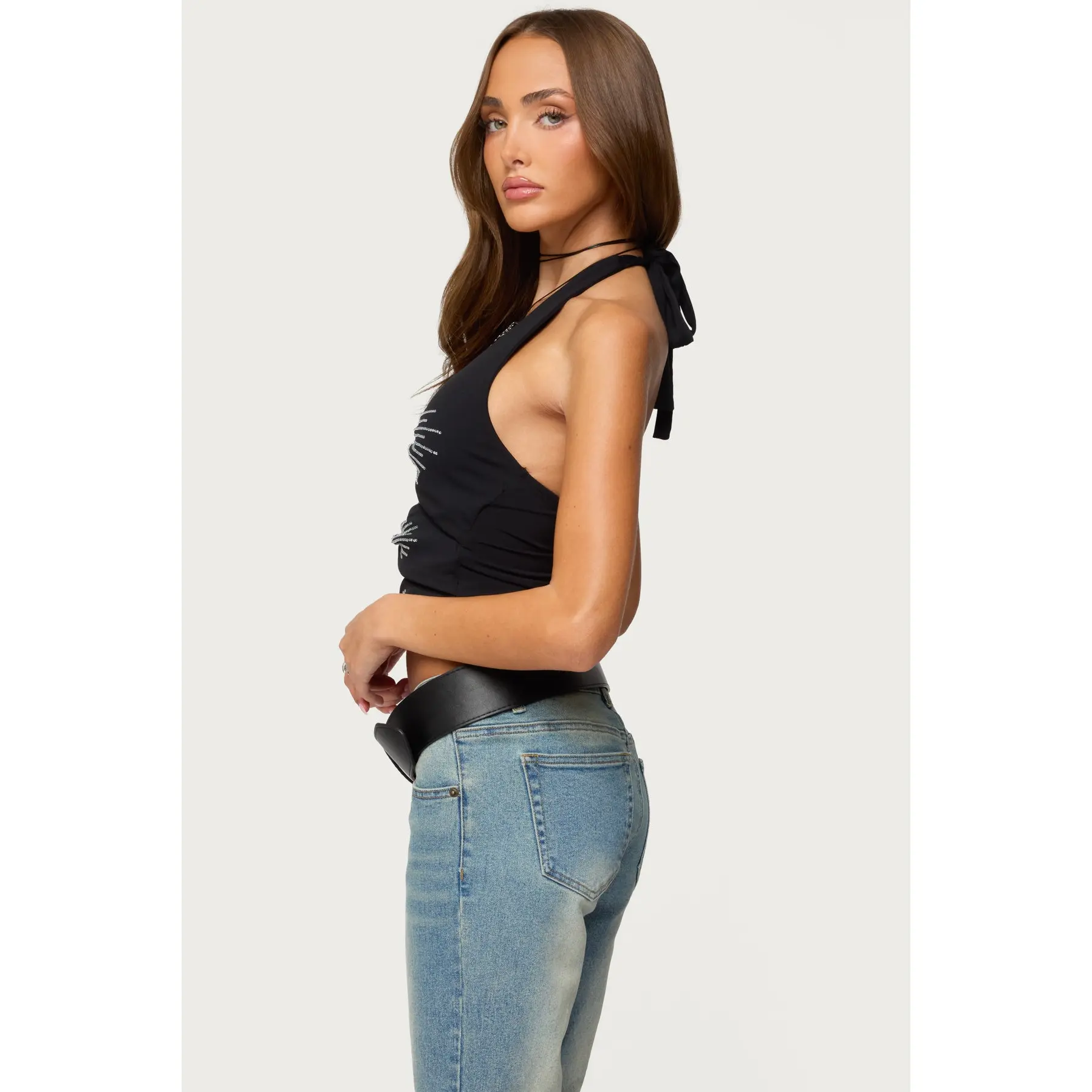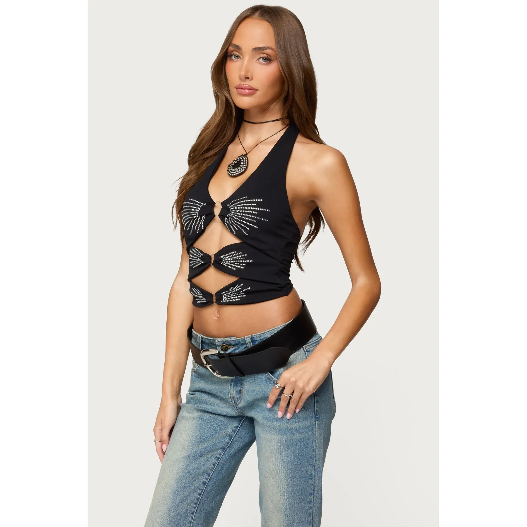 Lettie Rhinestone Cut Out Halter Top