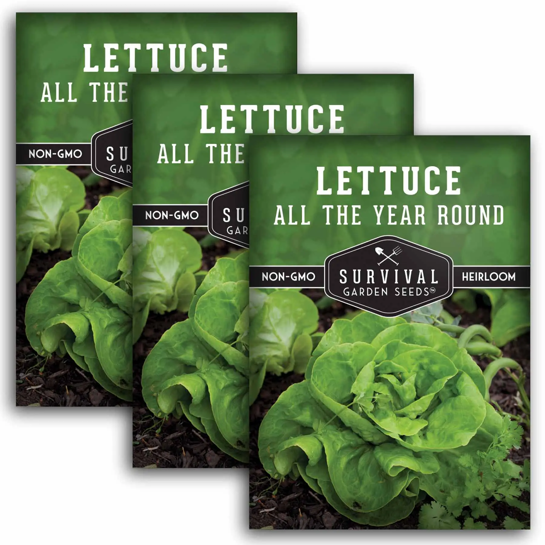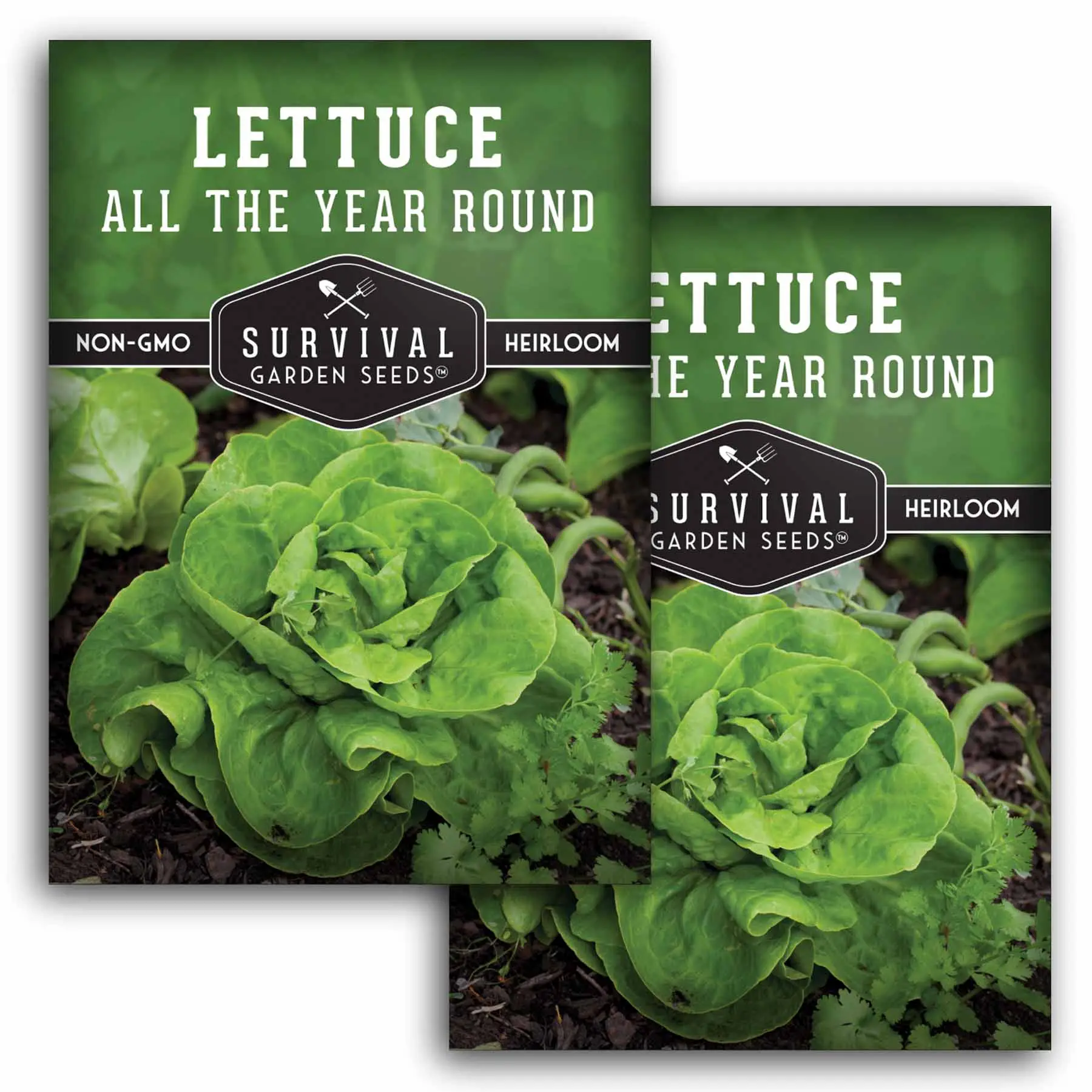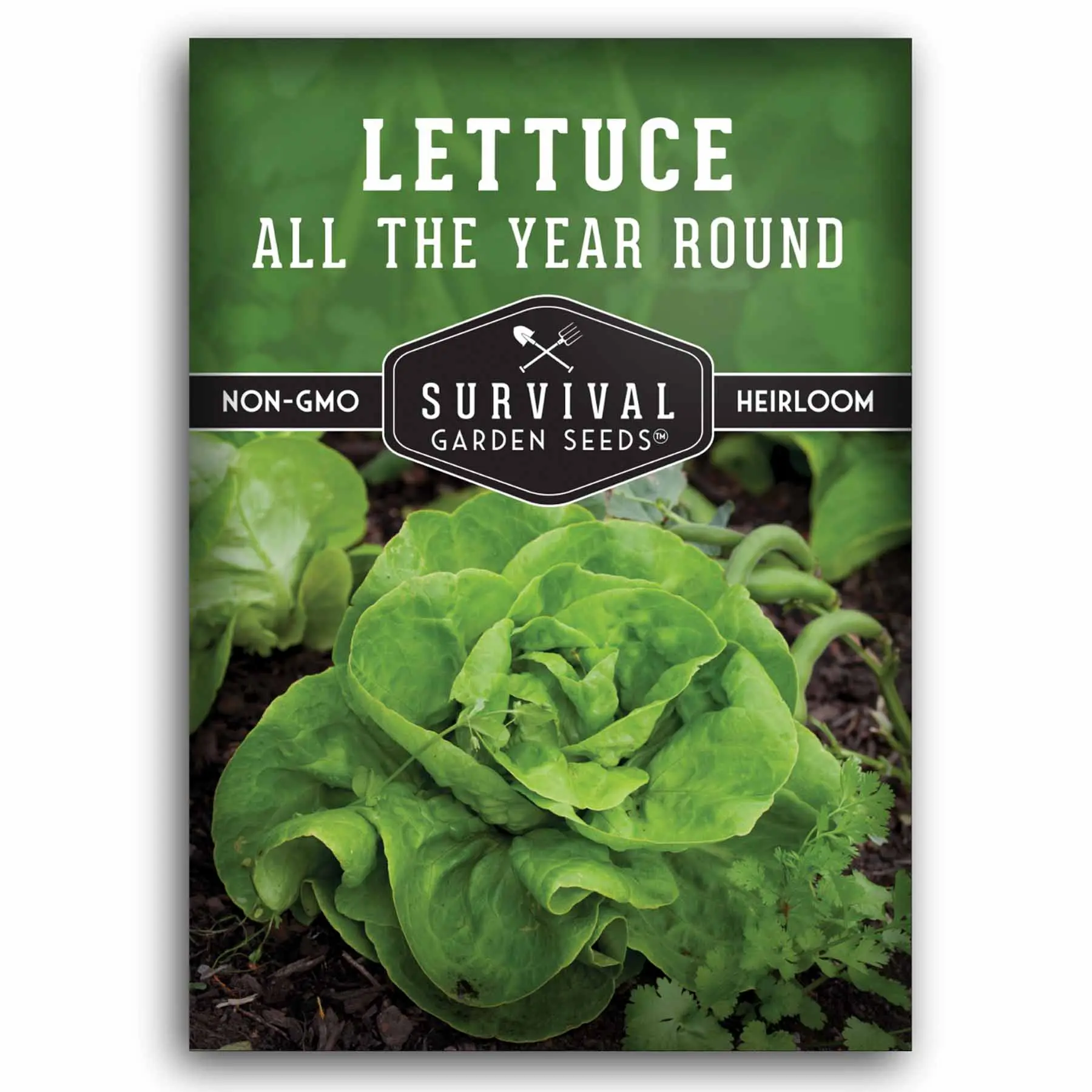 'All The Year Round Lettuce (Lactuca sativa) is a versatile variety, suited to all seasons, offering a constant supply of fresh, crisp lettuce leaves from your garden plot. With its high adaptability, this variety can be grown in most US hardiness zones and offers an early harvest in spring. Lettuce is often used for sprouting microgreens, and can be grown with hydroponics.