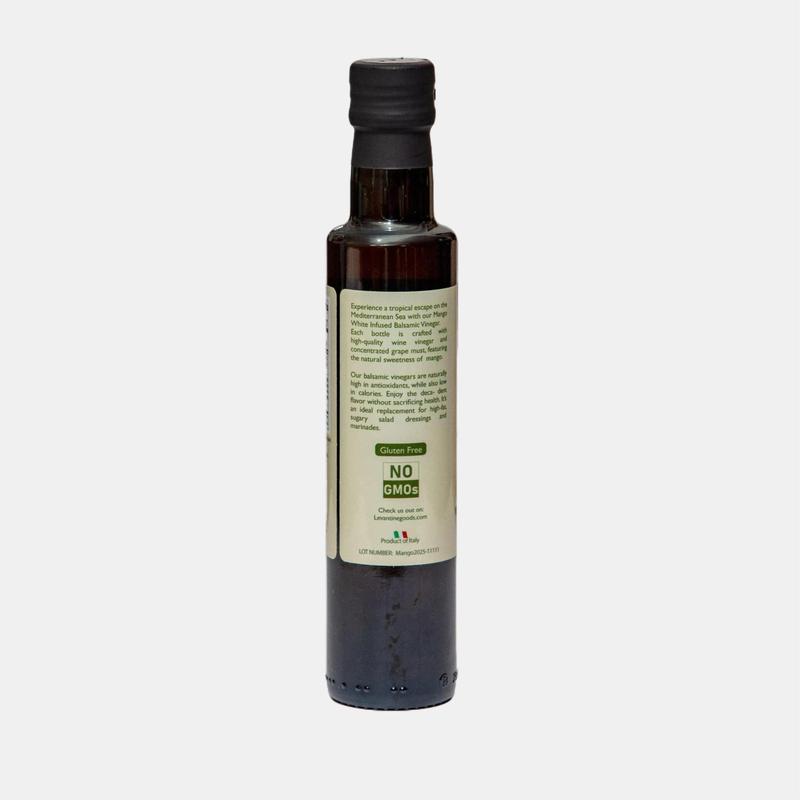 Tropical, tangy, and irresistibly smooth โ our Mango Balsamic Vinegar is a refreshing twist on a Mediterranean classic. Crafted in Modena, Italy, this golden balsamic is infused with the natural sweetness of ripe mangoes, delivering a bright, sun-kissed flavor that lifts every dish. Drizzle it over greens, seafood, or fresh fruit for a vibrant finishing touch that adds depth and delight.