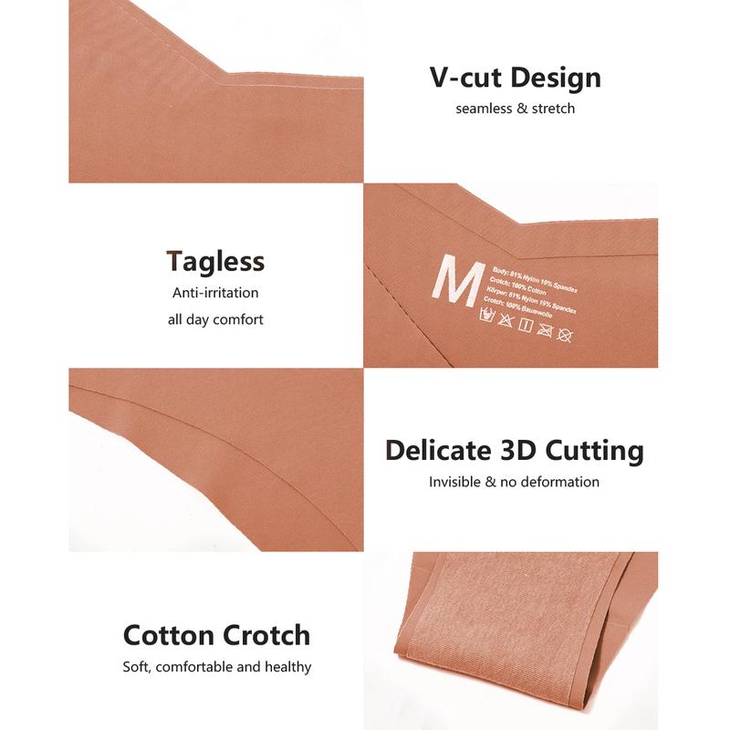 ·Seamless Womens Panties Material:These V-shaped waist bikini panties are made from 78% nylon and 22% spandex. Ice touch, soft, smooth, and stretch. They are lined with 100% cotton crotch for a more comfortable and breathable fit