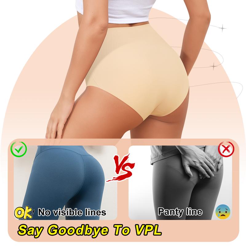 No Show High Waisted Underwear:3D cut ,No panty line ,seamless underwear double-layer covered waistband (containing about 2 cm elastic band) is just at the navel.It can be worn during pregnancy and postpartum recovery period, It wraps and fits the waist well, perfect fit but not tight