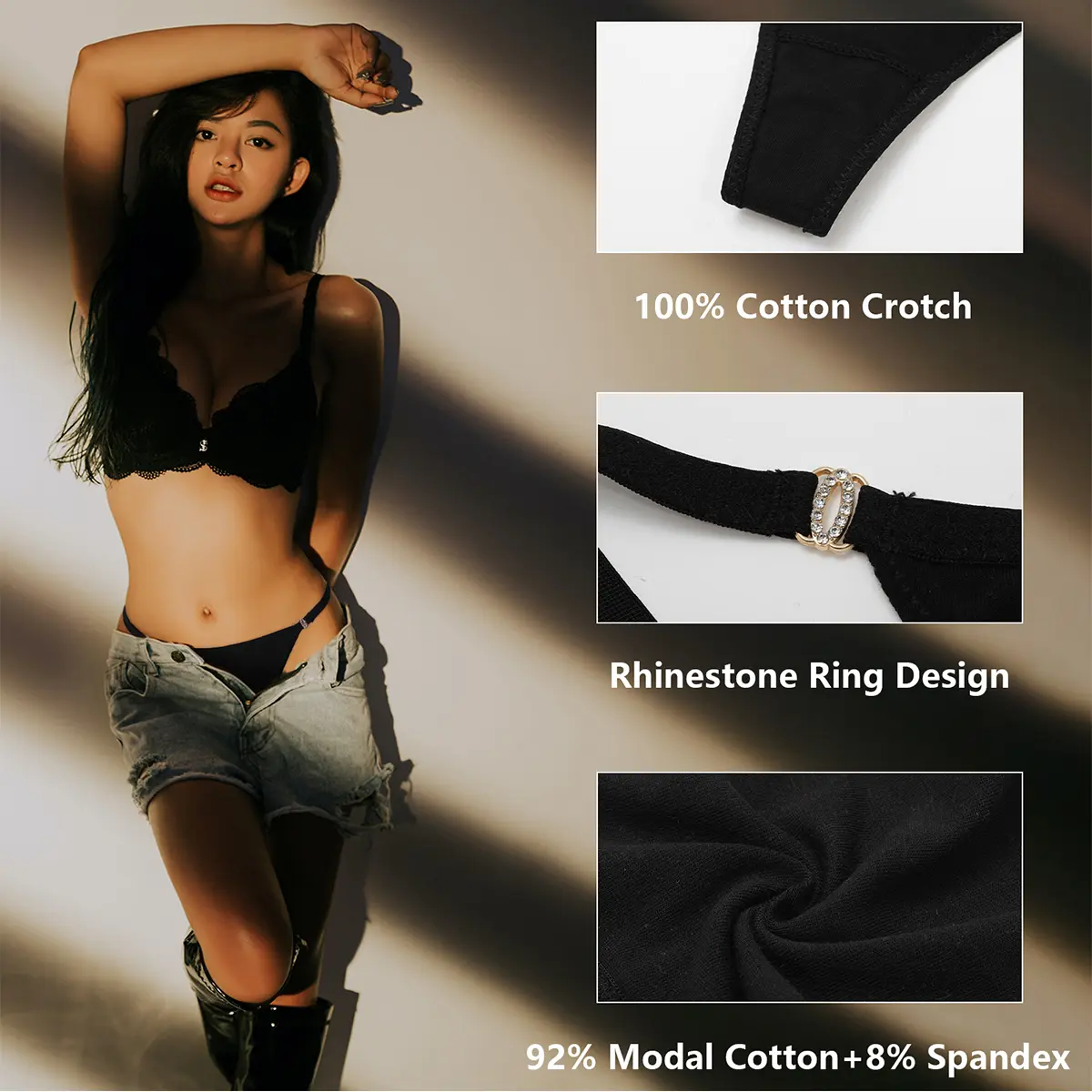 Material -Womens Thongs underwear are made of high quality 92% modal cotton and 8% spandex. Crotch is 100% cotton, and the double crotch is healthy. Cotton thong panties are silky soft, comfortable, breathable ,elastic, and not easily deformed, providing intimate care for women's delicate skin.