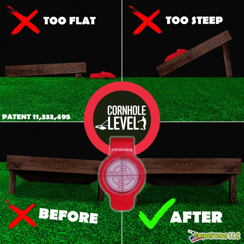 Are you tired of playing cornhole on uneven surfaces, struggling with tilted boards, and missing your target? It's time to take your cornhole game to the next level with our innovative Cornhole Level Attachment Tool by CornStars LLC. This precision device or tool is designed to be the ultimate accessory for any cornhole enthusiast, from casual players to seasoned pros. It also makes the perfect gift or present for anyone of all Levels of Cornhole gameplay!