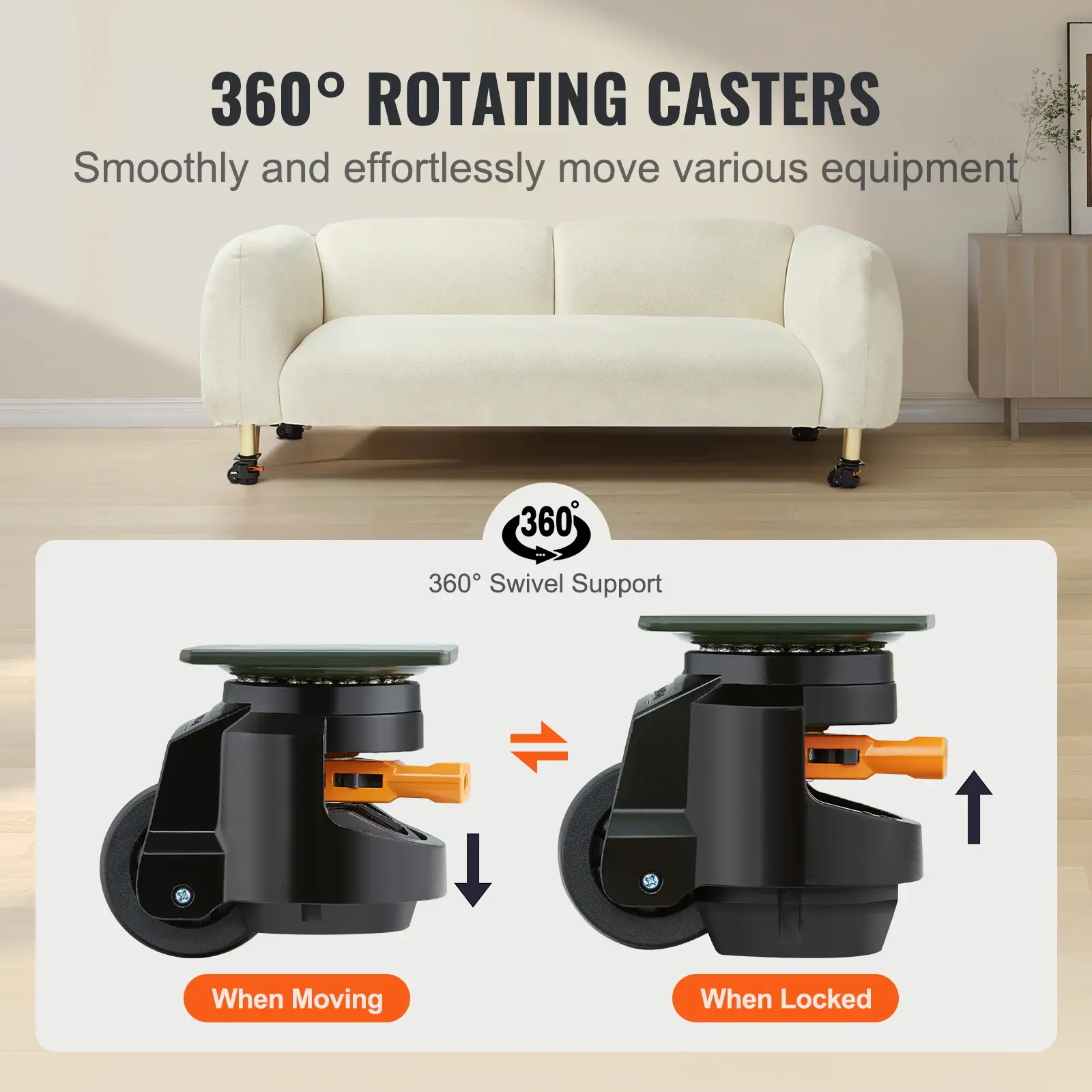• Upgrade Your Height Game: Say goodbye to wobbly tables! Our easy-twist handle lets you adjust each wheel's height for a super-even setup. These caster wheels aren't just height-adjustable; they're life-adjustable.