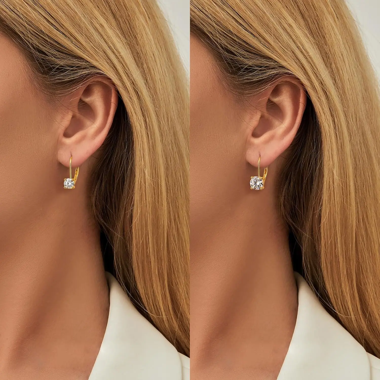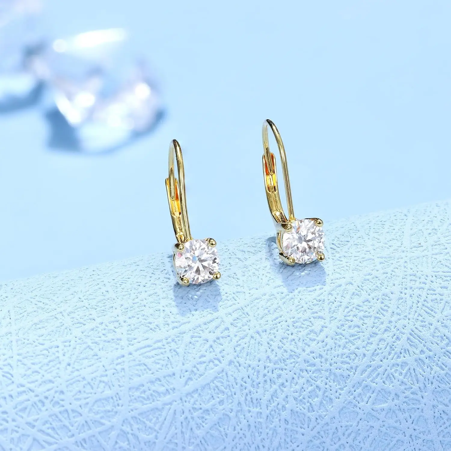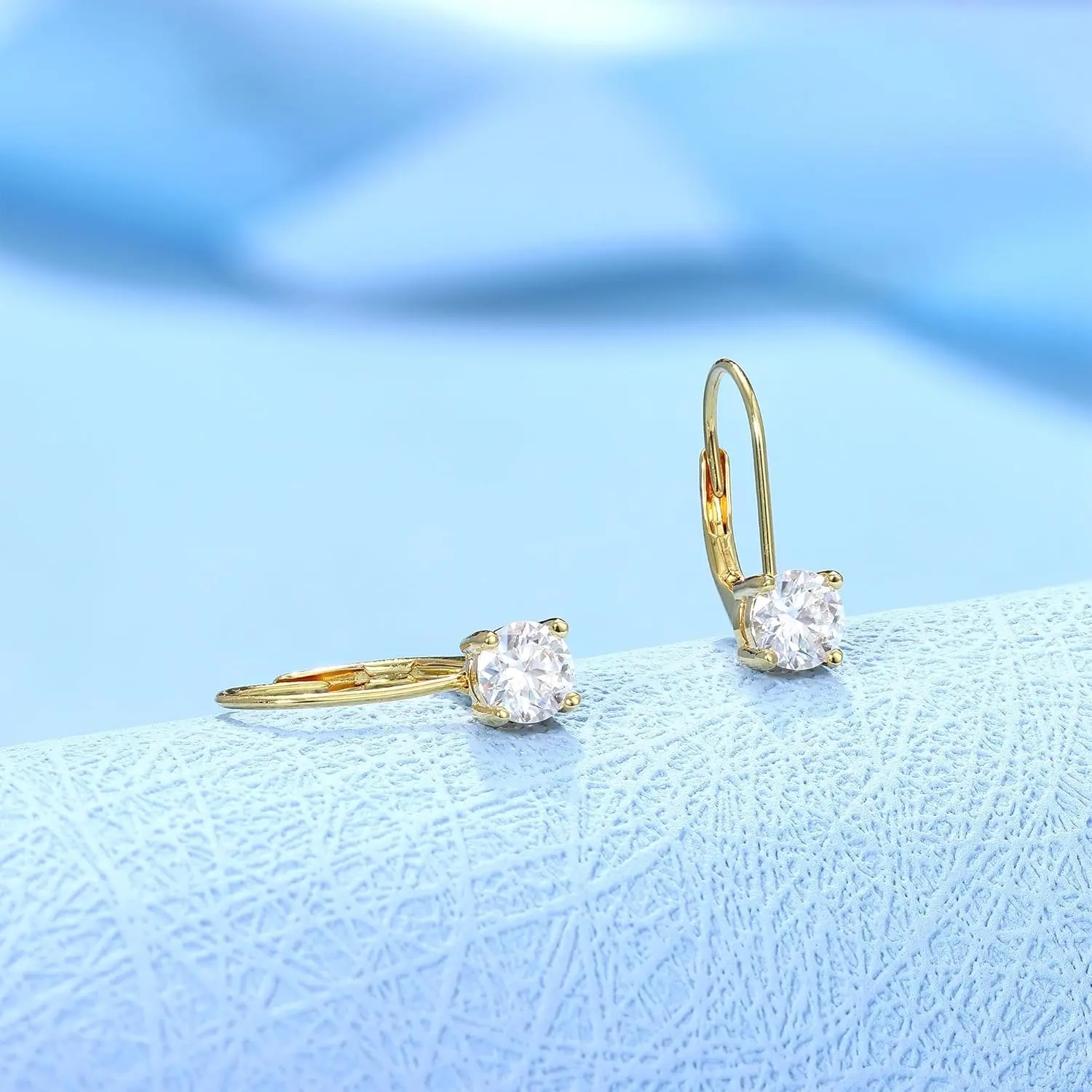 Trendy Color Brilliant Leverback Earrings Hypoallergenic Dangle Drop Earrings  Round-Cut Cubic Zirconia Earrings for Womens