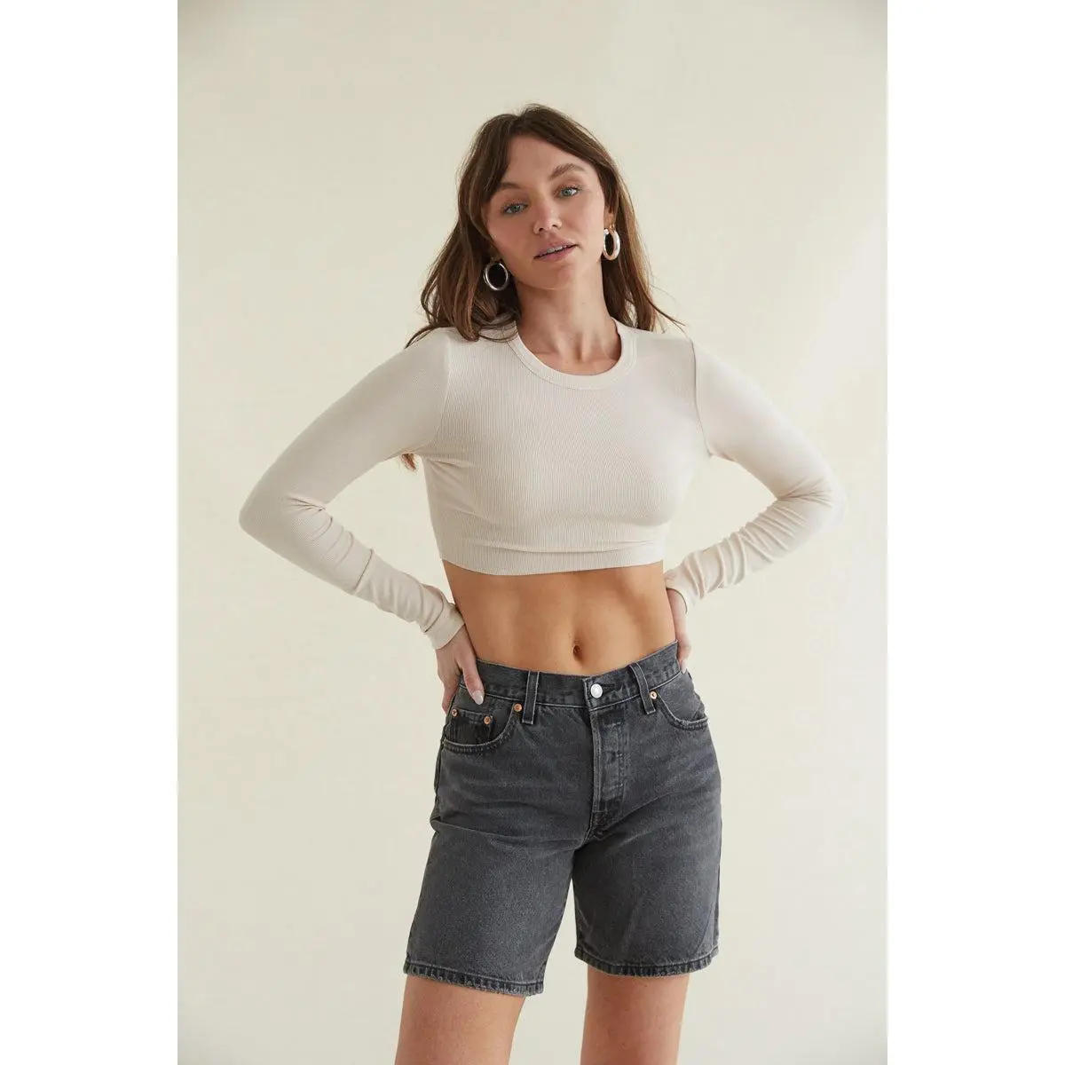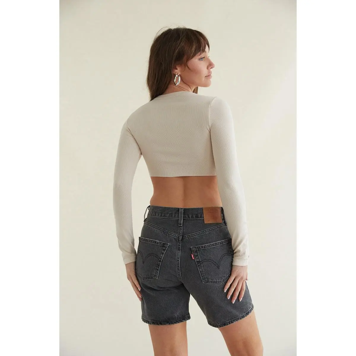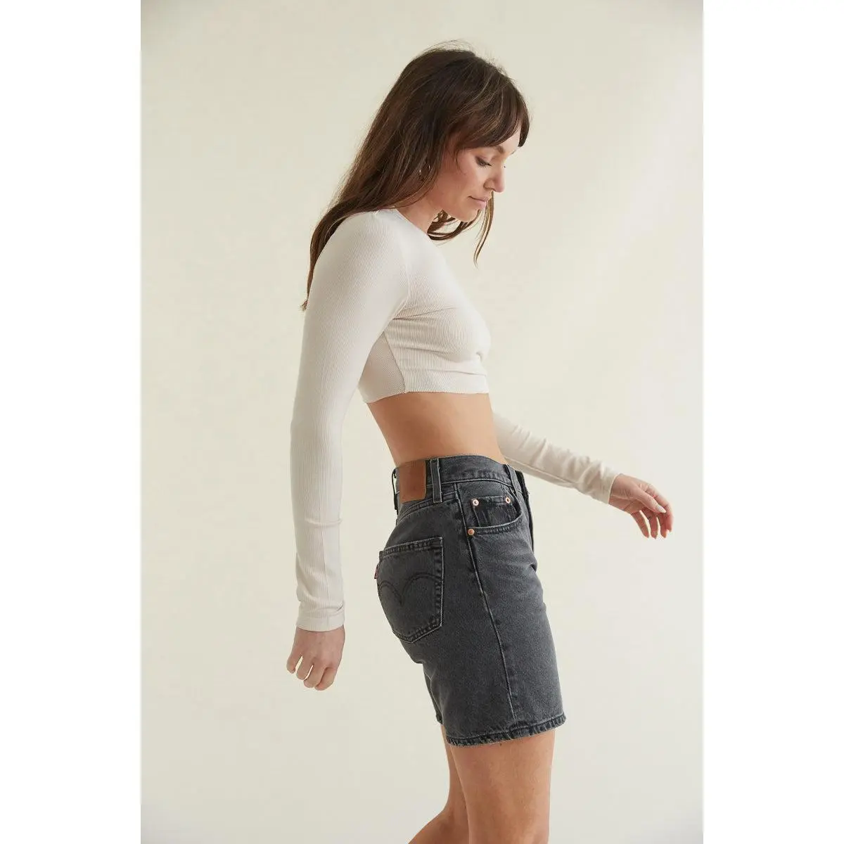 The Levi's 501 '90s Shorts are a must-have staple! These black worn in shorts feature a high rise fit, 5 pocket design, and are relaxed through the hip and thigh. Pair with the Rachel Ribbed Long Sleeve Crop Top to complete the look!