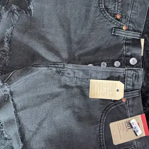 Good news are they’re real Levi’s and fit me true to size. Bad news is it still had the Target security tag on so I had to break it myself with scissors. Pull the fabric back, then just slide the scissors in the crevice and turn the scissors, it should break off. Color is not as dark black as pic