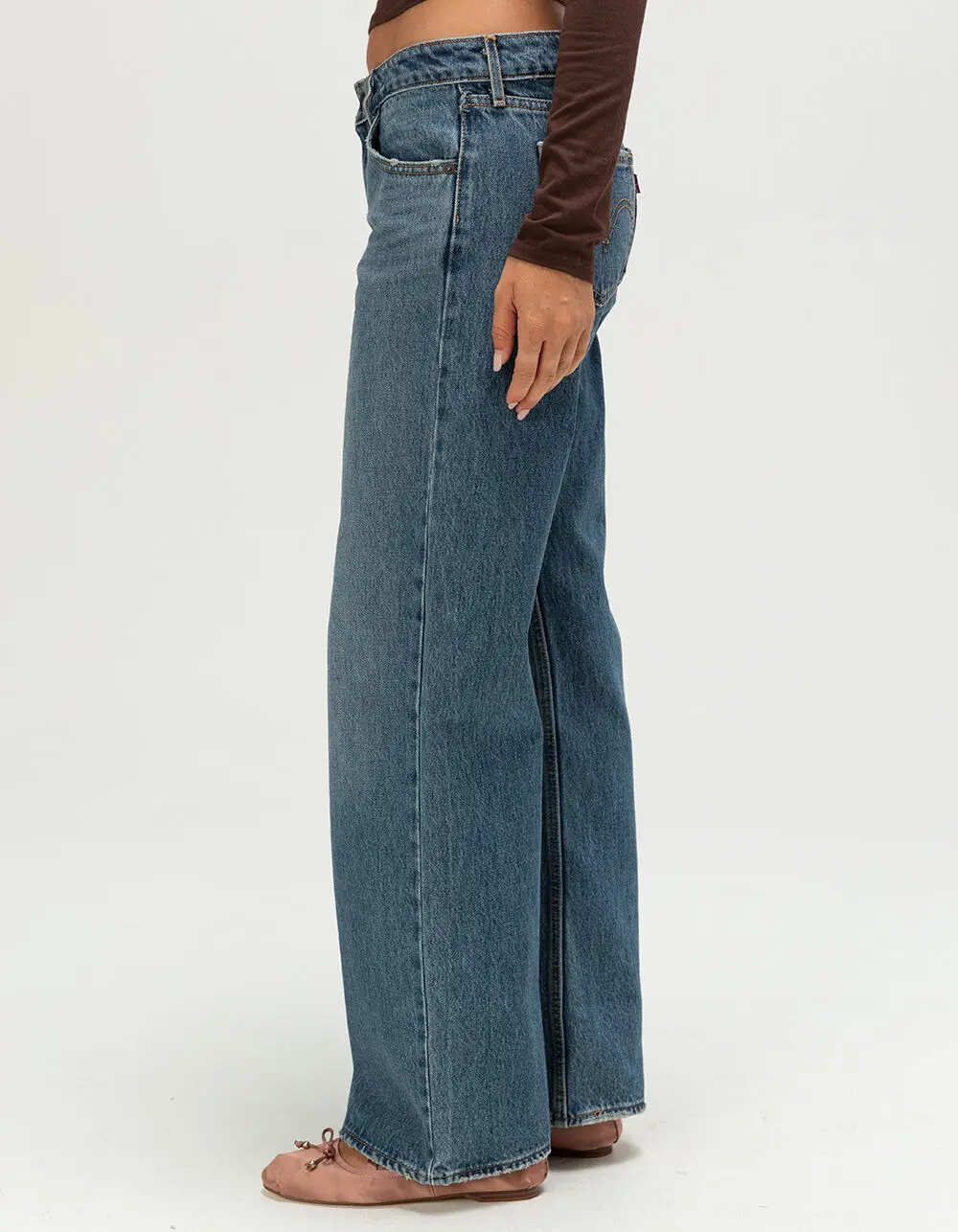 Levi's Premium Low Loose Jeans - Rescued City. Low rise is here to stay—and Levi's super-flattering Low Loose jeans prove it. Cut with a versatile low rise and a wide, straight leg, they're a throwback Y2K style that's subtle enough to wear every day. Low rise jeans inspired by early aughts style. Features a straight, wide leg and a relaxed fit through the hip and thigh. Low rise: 9 1/8in. straight leg. 20in leg opening. Non-stretch. 5-pocket styling. Zip fly. 100% Cotton. Machine wash. Imported.