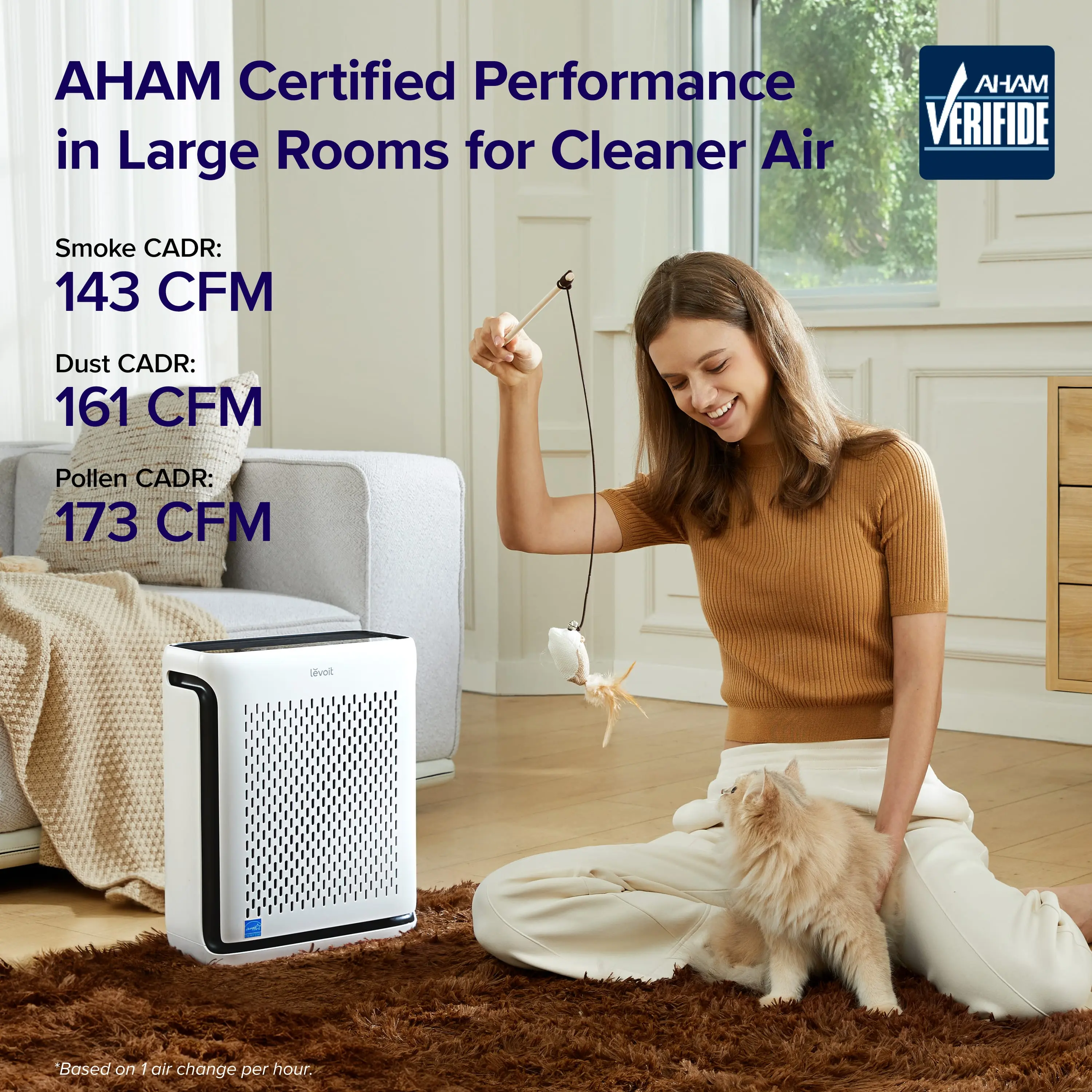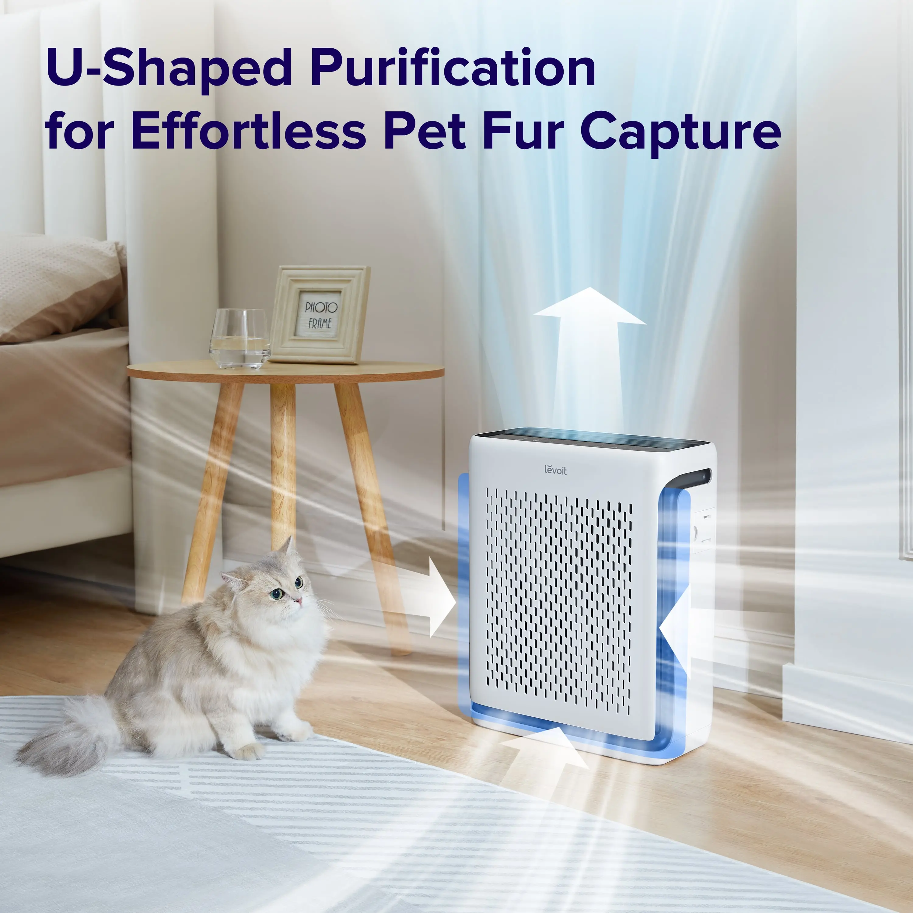 Pet Mode cleans the air and conserves energy. The wide U-shaped air inlet traps airborne pet fur and large particles. This ensures a cleaner environment for pets and their owners. The Vital 100S-P Air Purifier is compact and efficient, purifying a 1100 ft² space once/hour. It has a CADR of 143 CFM, making it ideal for homes.
