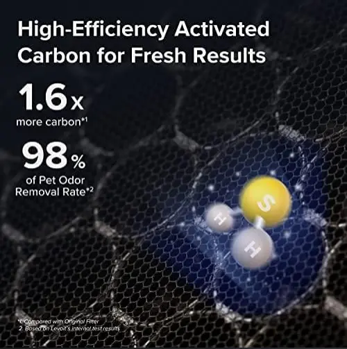 Cleaning the Pre-Filter with water extends the life of the 3-stage filtration system. The High-Efficient Activated Carbon Filter removes pet odors, fumes, and VOCs. This washable feature ensures continuous air purification without frequent replacements.
