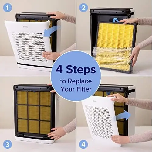 Off-brand replacement filters can damage your air purifier. For optimal performance, use genuine Levoit replacement filters. The product dimensions are 6.4 x 12.8 x 16.1 inches, weighing 7.28 pounds. Enjoy fresh air in minutes with the Vital 100S-P.