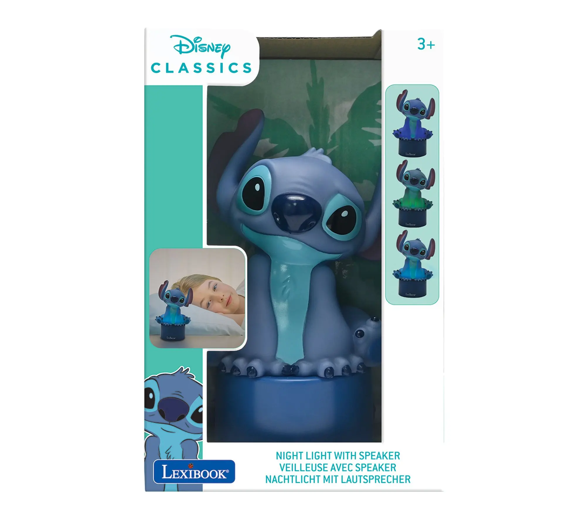 Create a calming bedtime routine with this Stitch nightlight and speaker, designed to fill your bedroom with soft, color-changing illumination and gentle tunes. Enjoy peaceful evenings as your favorite character lights up the room, while the auto shut-off feature lets you drift off worry-free. From Lexibook.