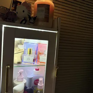 ·Large Mirror with Adjustable Lighting The wide-angle mirror is equipped with LED bulbs offering three color settings and adjustable brightness. Whether you're preparing for the day or a night out, the lighting adapts to your needs, creating a comfortable and professional makeup environment.