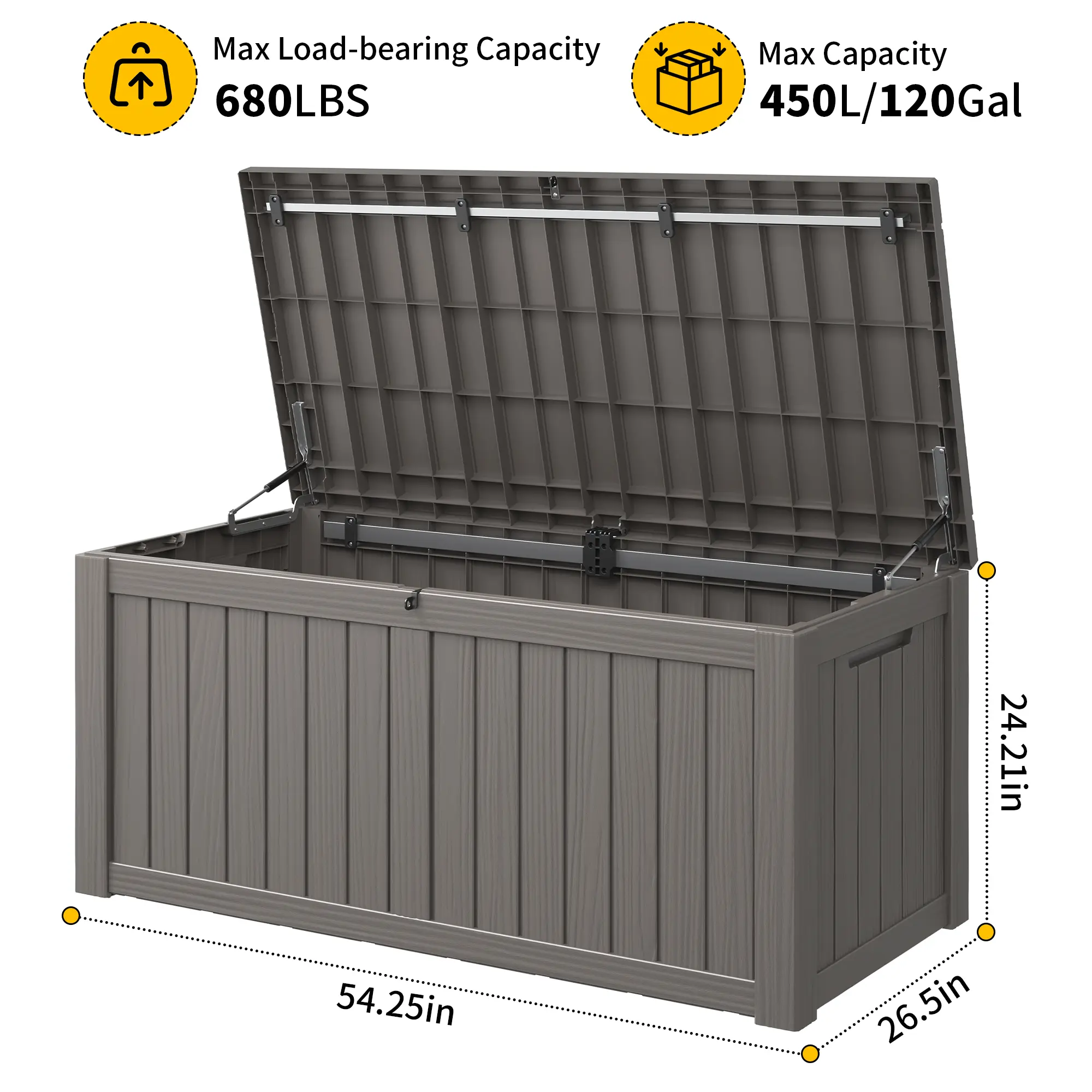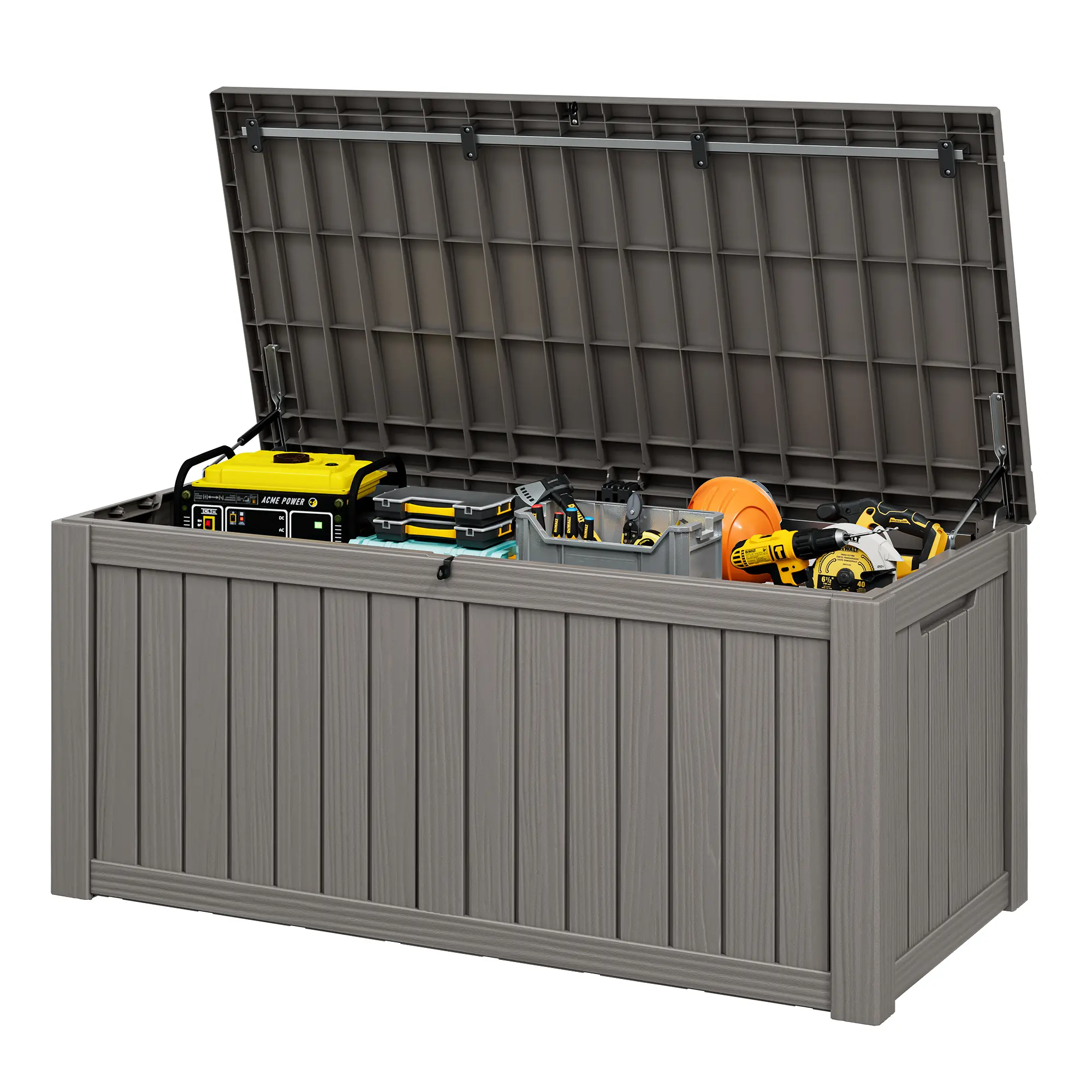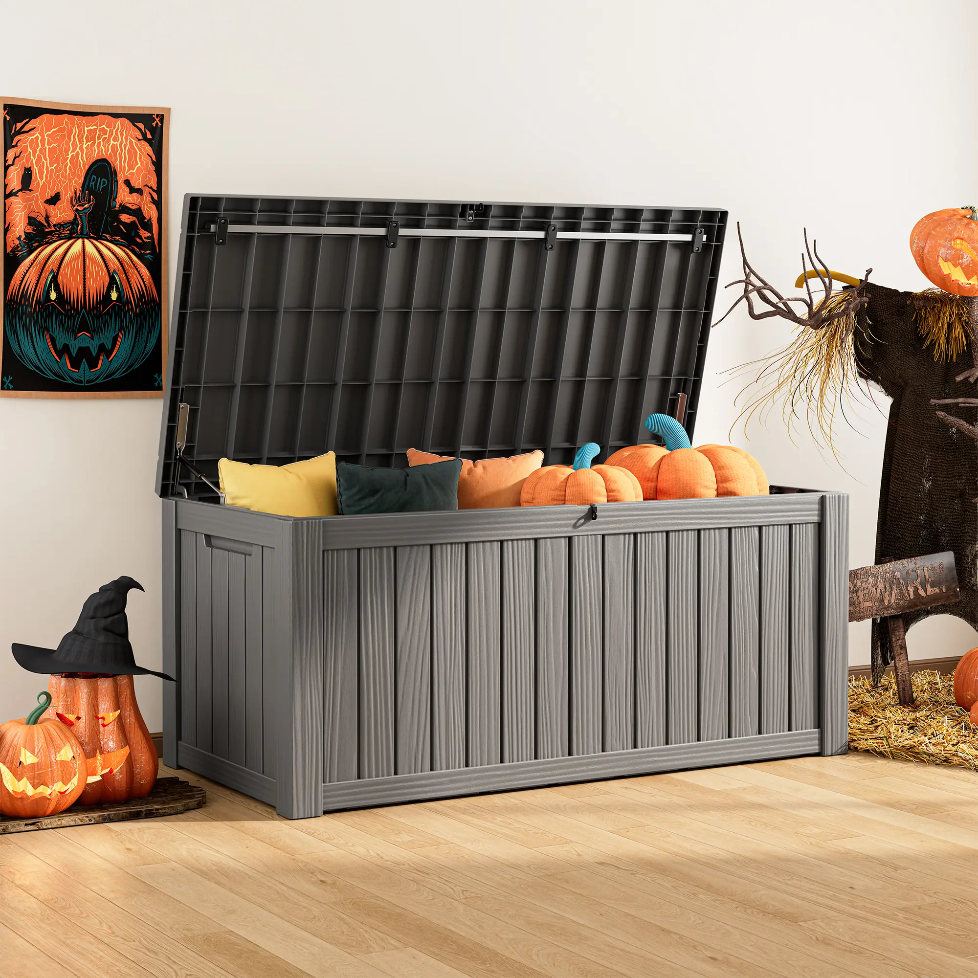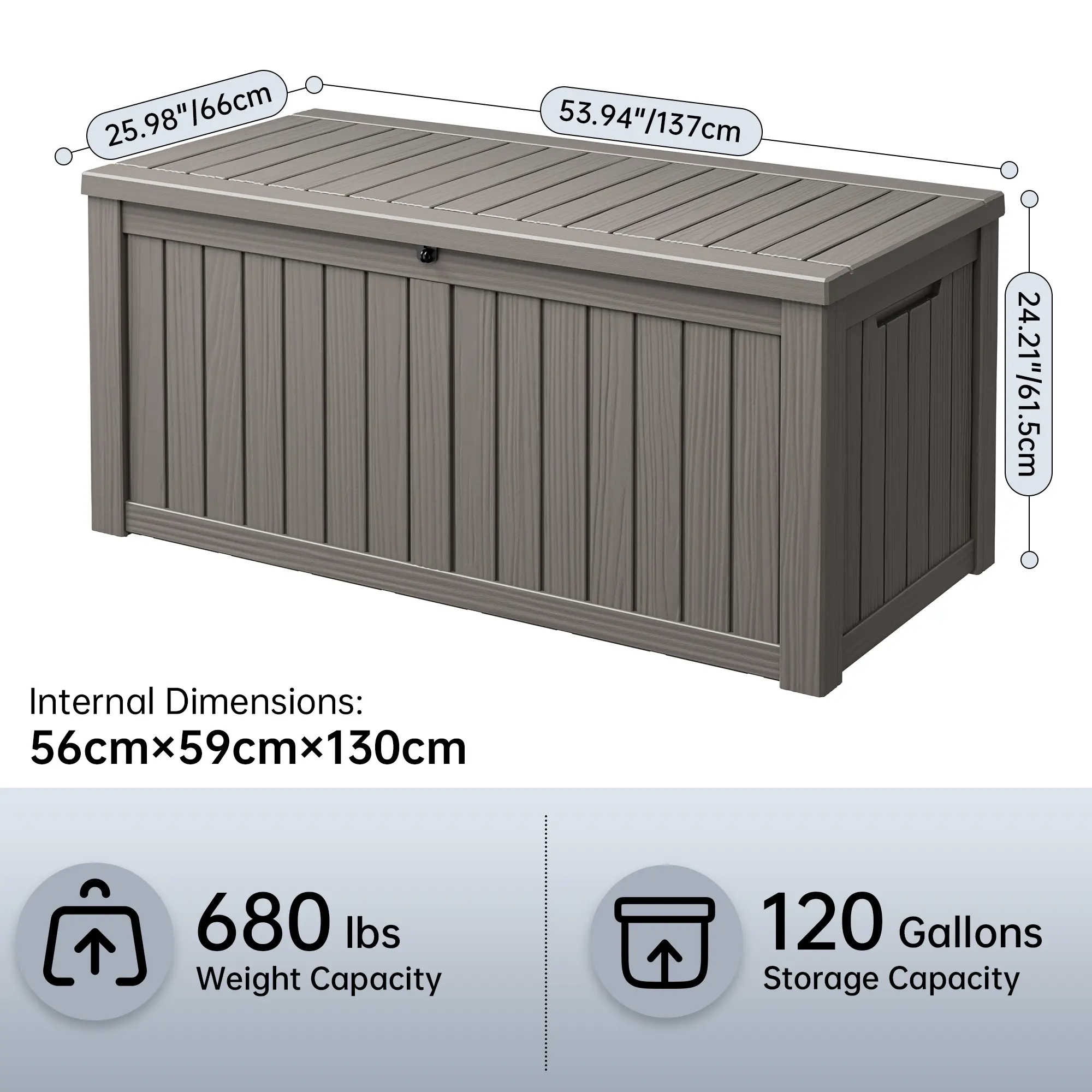 ·This 120-gallon box offers ample storage space. It's great for organizing various items in your outdoor areas. Whether you're storing tools, garden supplies, or patio furniture, this box is a practical solution.