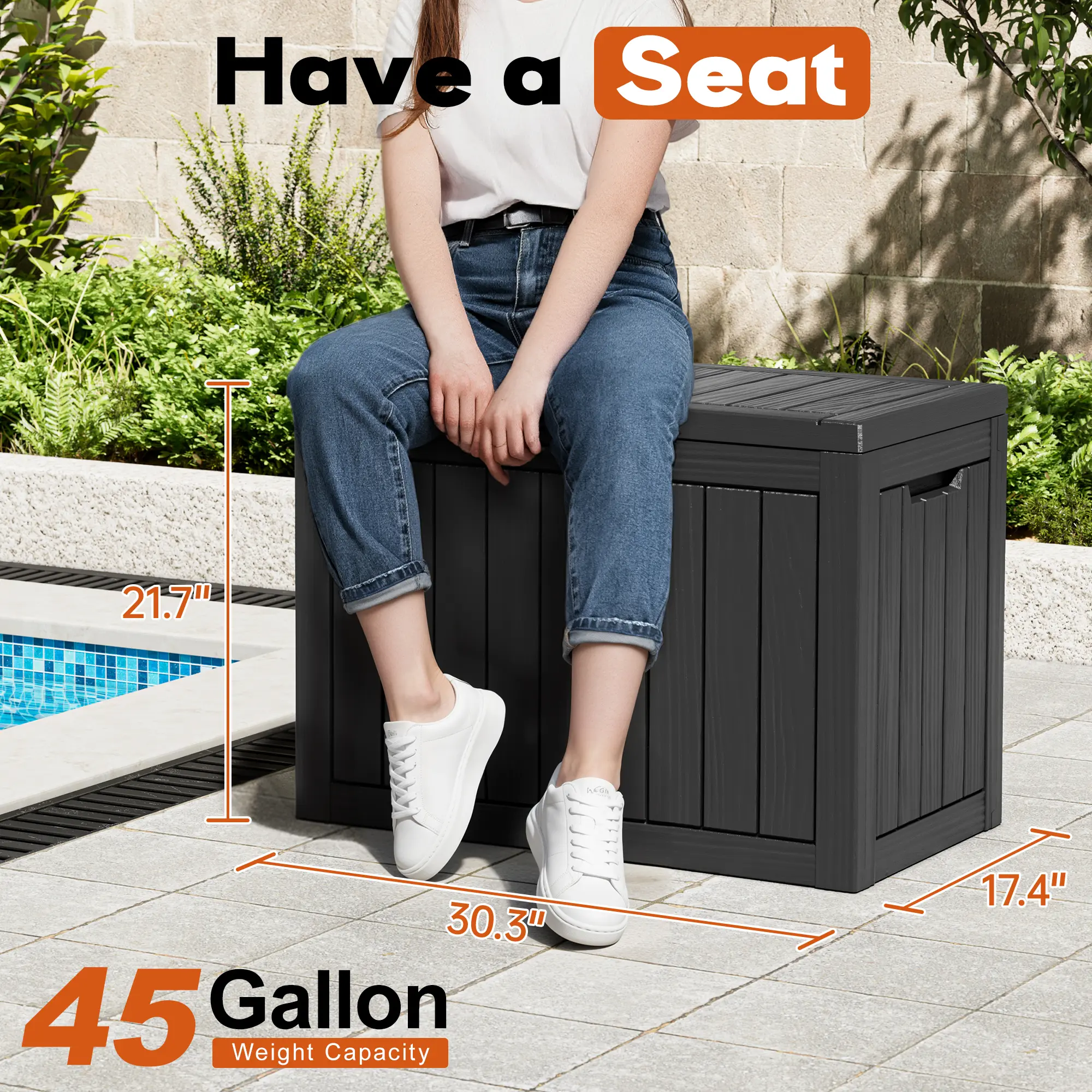 ·This 45-gallon outdoor storage box is ideal for patio, garden, and poolside storage. 🌿