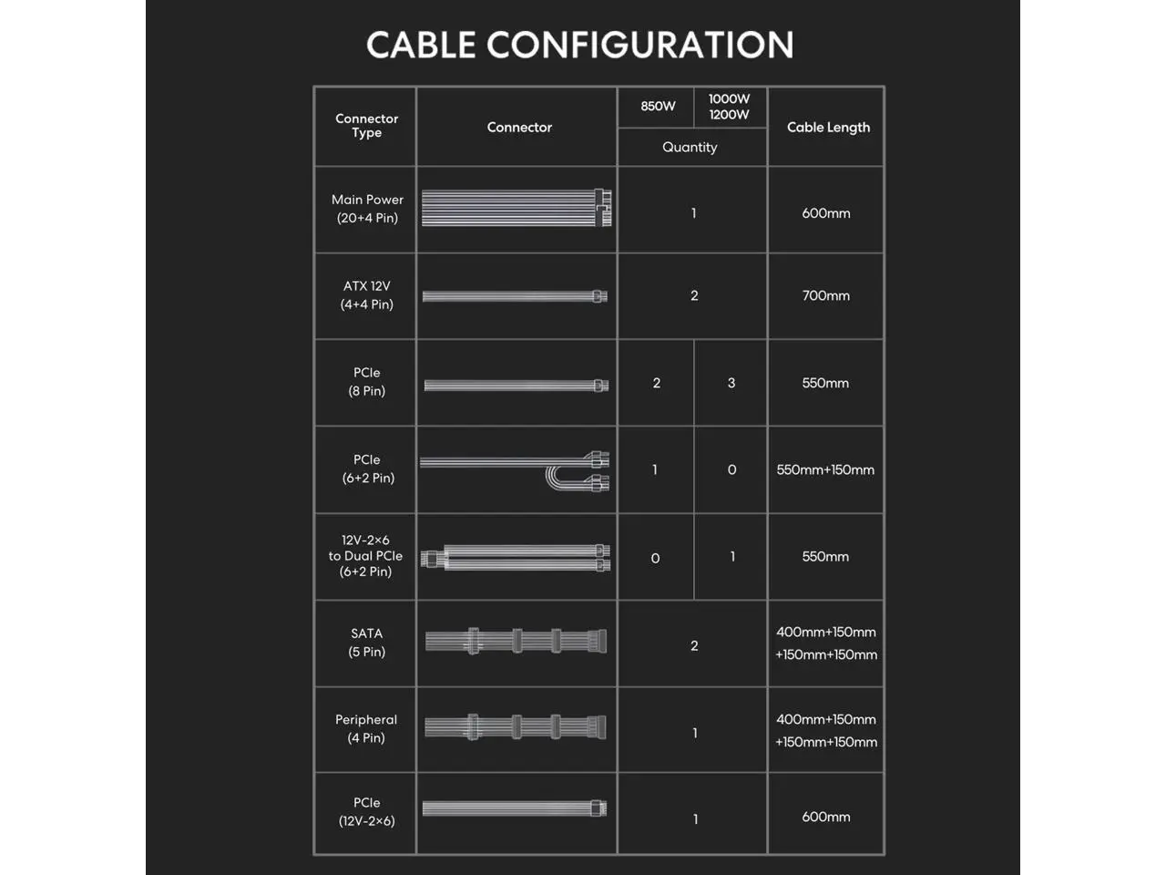 The LIAN LI SX Platinum Series is available in 850W, 1000W, and 1200W, offering up to 92% efficiency with 80 PLUS Platinum certification. It complies to the latest Intel ATX 3.1 and PCIe 5.1 standards, and uses in-house 12V-2×6 alloy copper terminals for enhanced GPU compatibility. These power supplies feature a high-amperage single +12V rail design. The intelligent cooling system enables silent, fanless operation at loads up to 40%, complemented by highly flexible braided cables. Built with 100% Japanese 105C capacitors (including solid capacitors), they ensure continuous output at 40C/104F, backed by a 10-year hardware protection for durability and reliability.