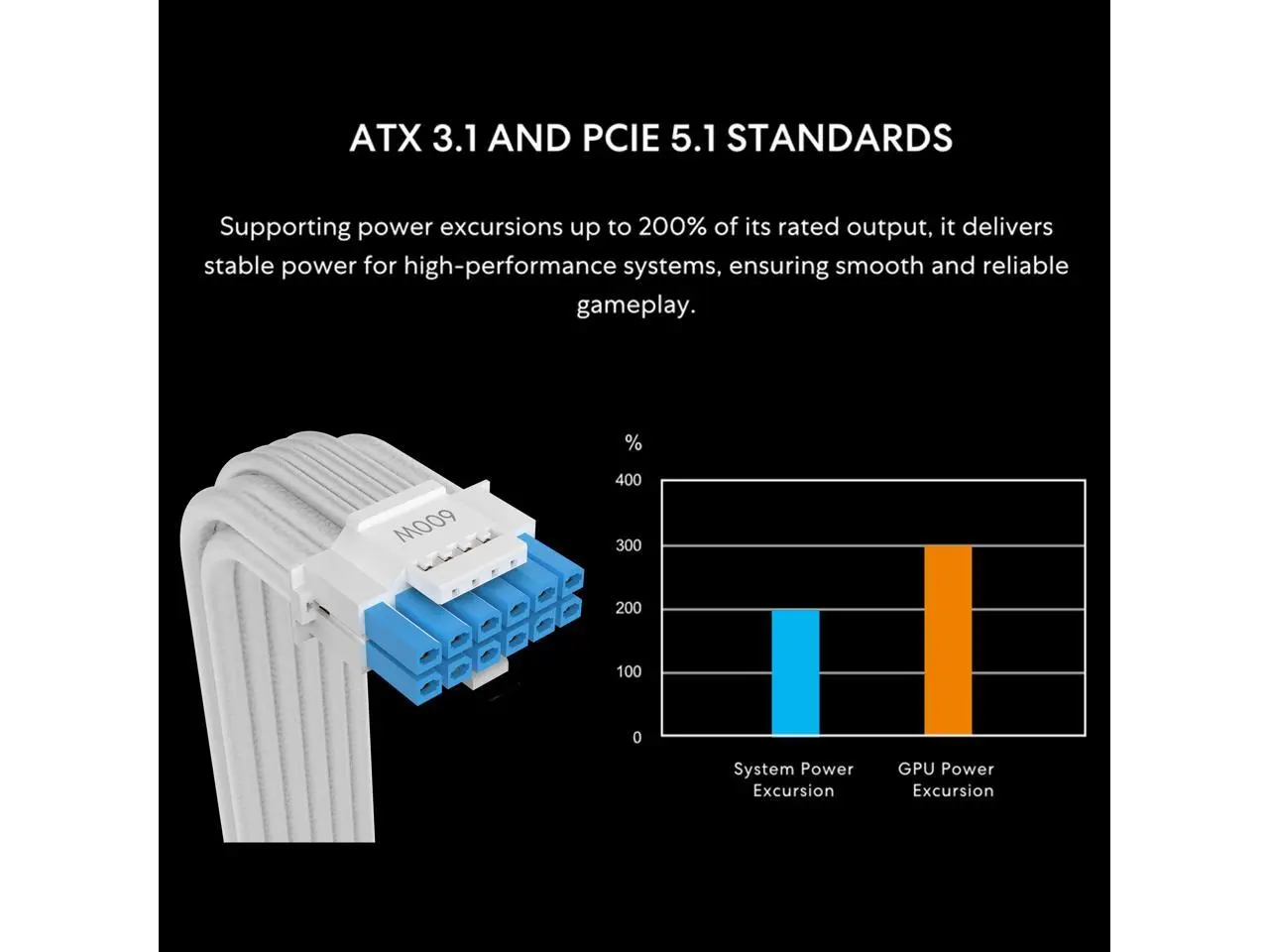 Lian Li SX Platinum 1200W SXP Compact ATX Form Factor Power Supply w/ 12V-2x6 Cable - ATX 3.1 & PCIE 5.1 Compliant - 140mm Fan - Full Modular - 10 Year Warranty - White (SX1200P.W)