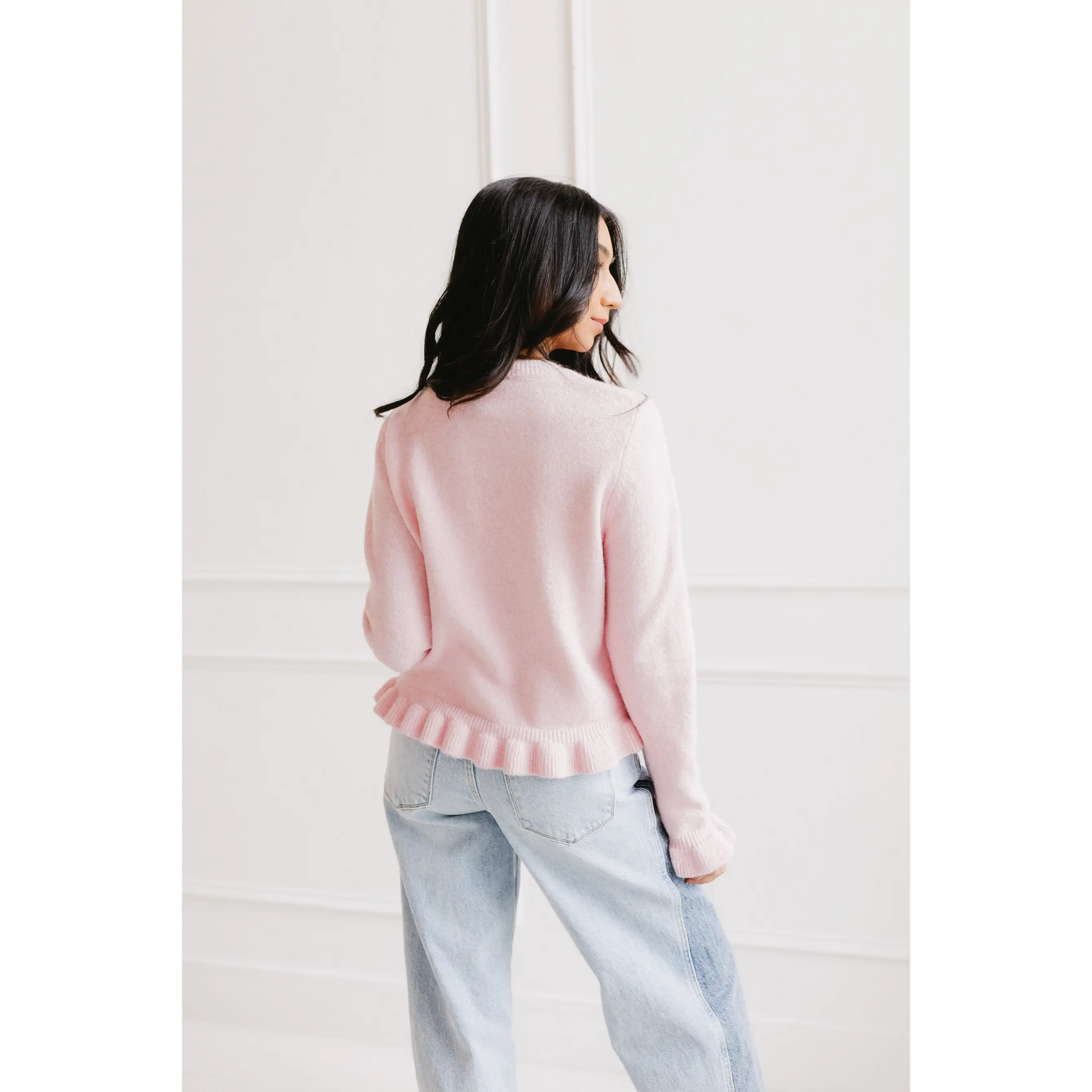 I absolutely love this sweater. Love the ruffles. I got so many compliments when i wore it to a shower.