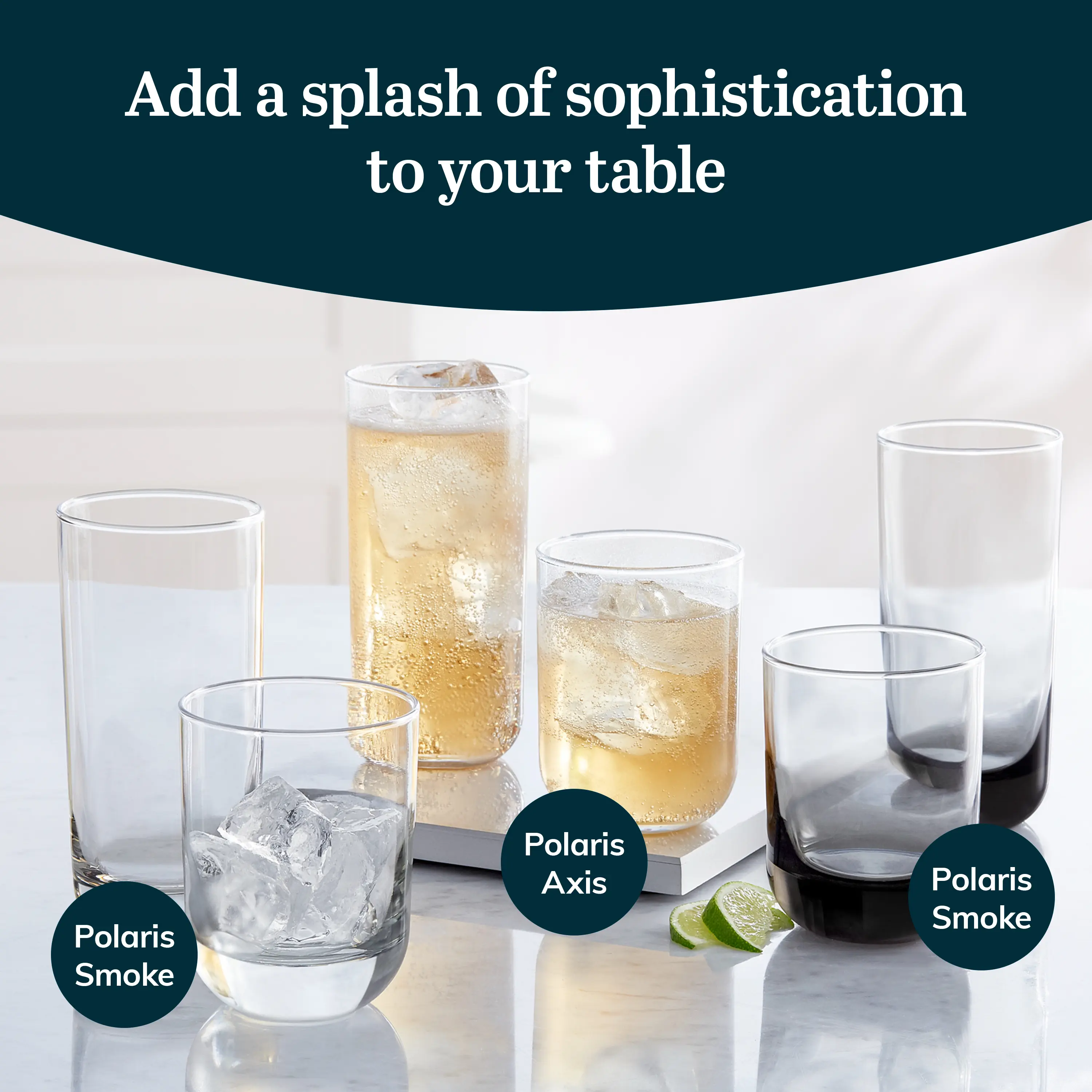 Featuring sleek and elegant straight lines in a unique smoke-colored glass, this Polaris drinkware set is versatile enough to make any cocktail appear modern — from everyday drinks to sophisticated mixology. Stylish enough to turn everyday lunch into unforgettable brunch or supper into a soiree, they're also great for relaxing on a hot afternoon with iced tea, water, or soft drinks. Bring them home for yourself, or present as a gift at weddings, birthdays, anniversaries, or any celebration.