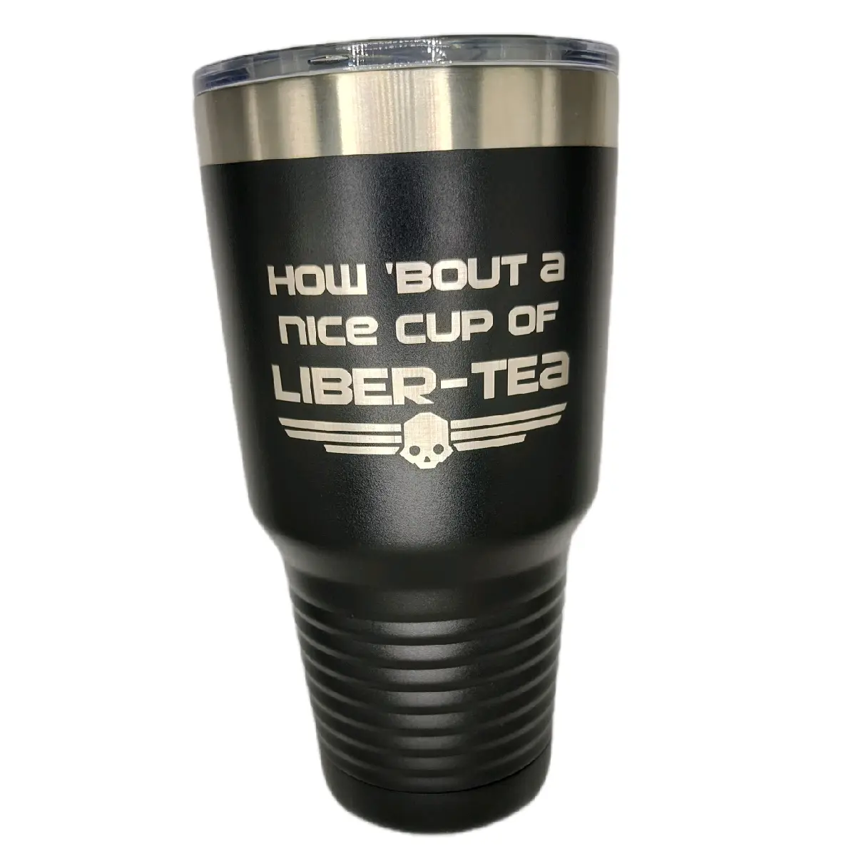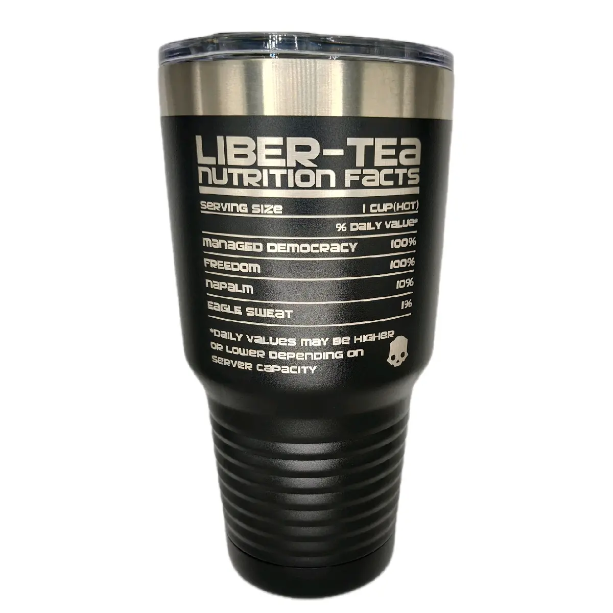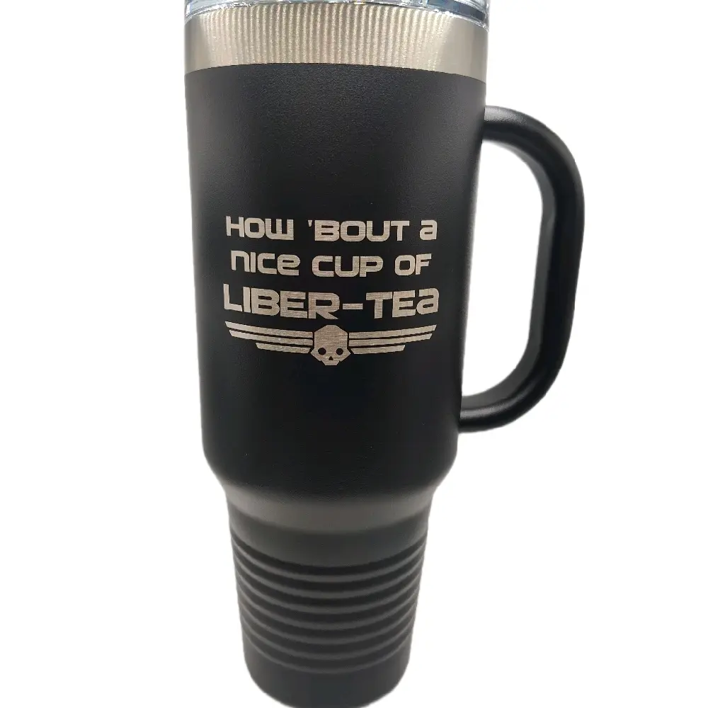 The Liber-Tea Stainless Steel Tumbler has plenty of room for your favorite beverage without having to refill constantly. Its stainless steel construction ensures that your drink stays at just the right temperature throughout your mission or daily commute.