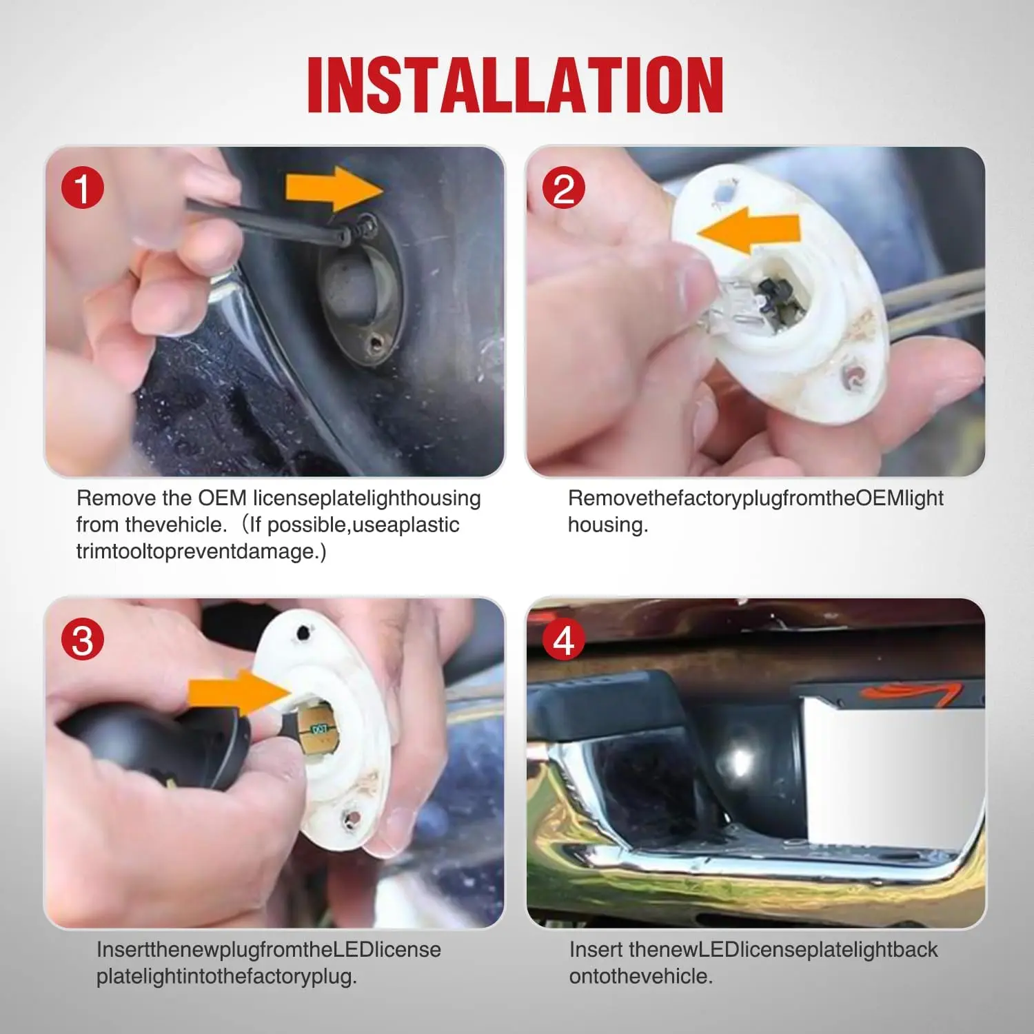 Plug and play, direct replacement for factory tag light, no just take out your original bulbs and insert the new plug into the socket. Non-Polarity, no need to worry about positive and negative connections.