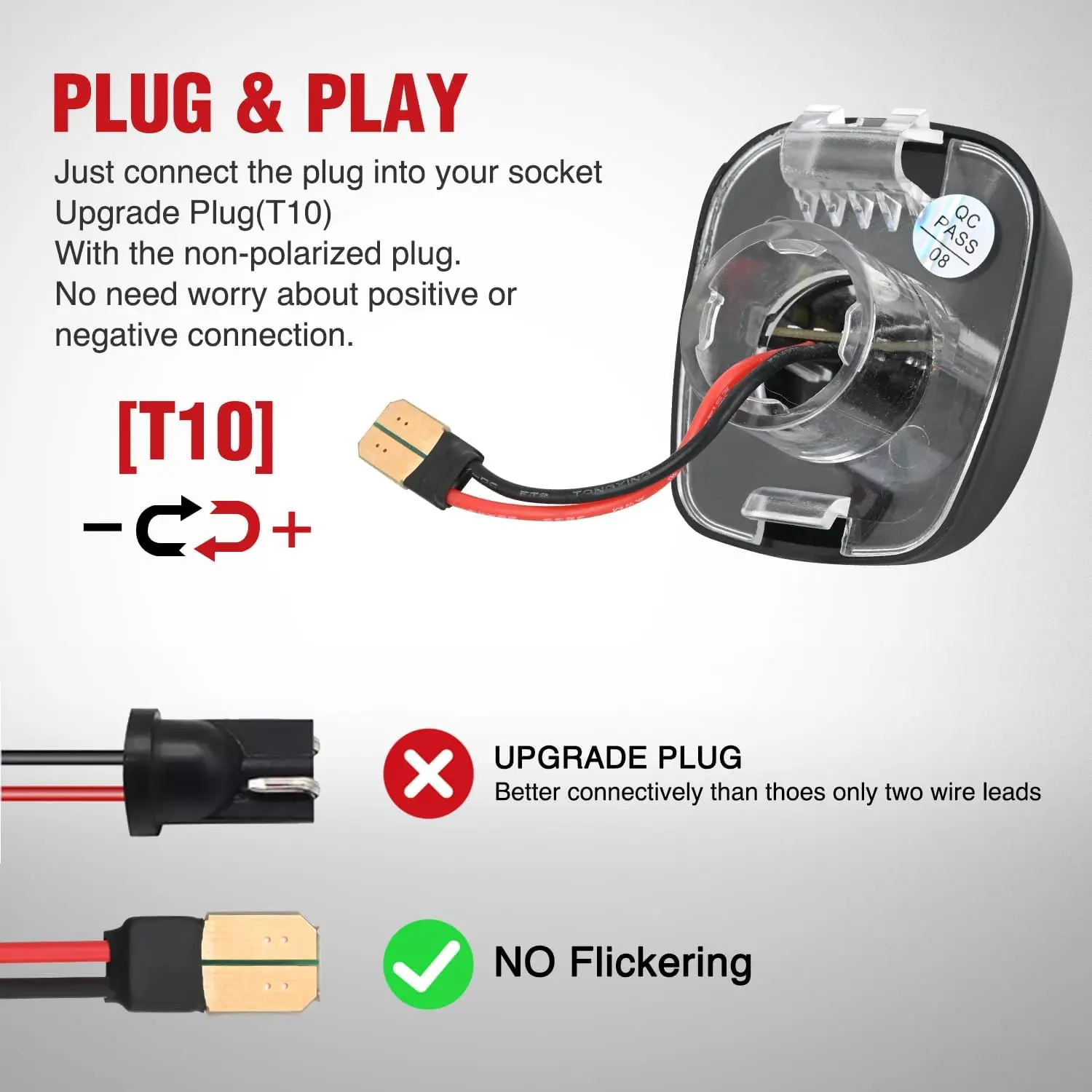 Plug and play, direct replacement for factory tag light, no just take out your original bulbs and insert the new plug into the socket. Non-Polarity, no need to worry about positive and negative connections.