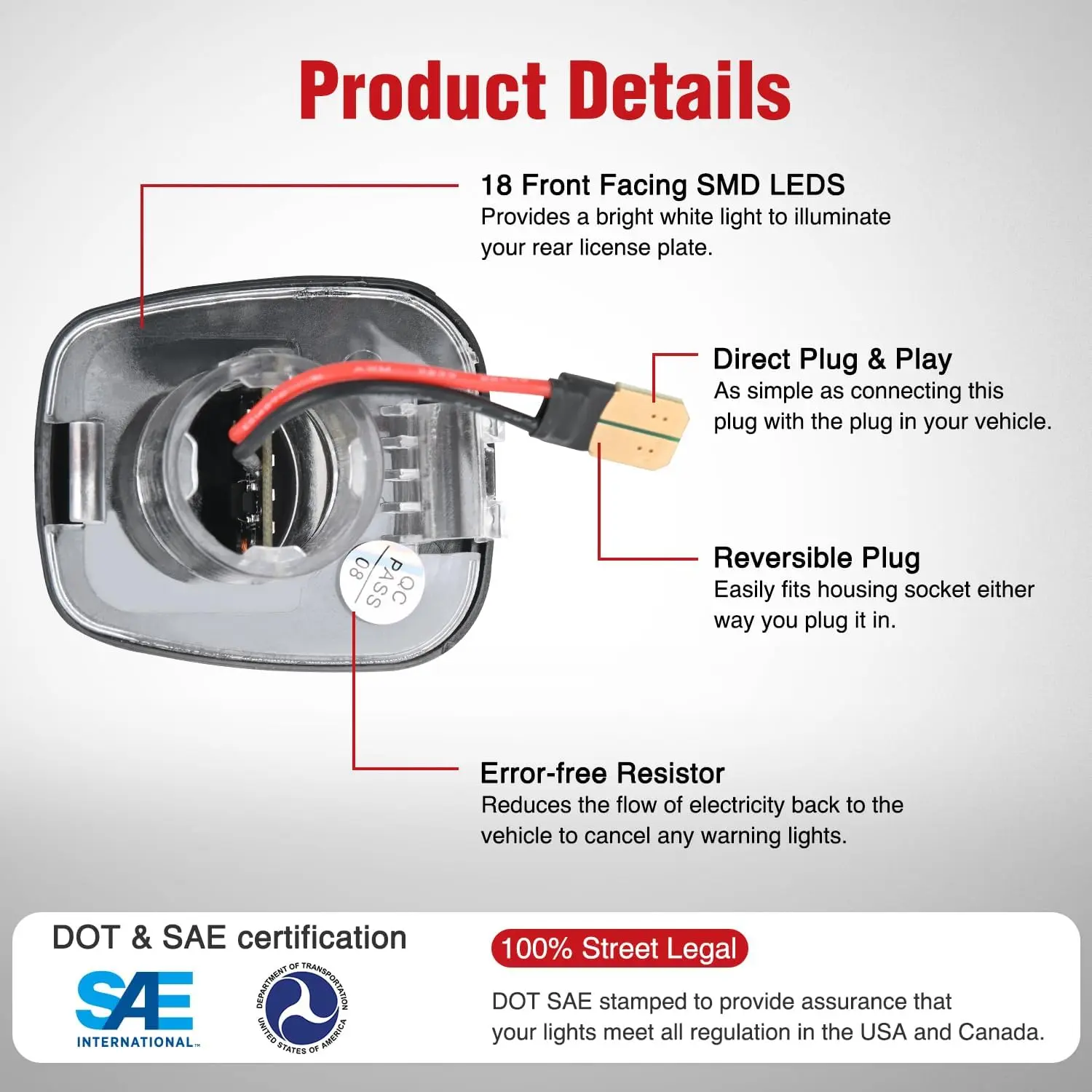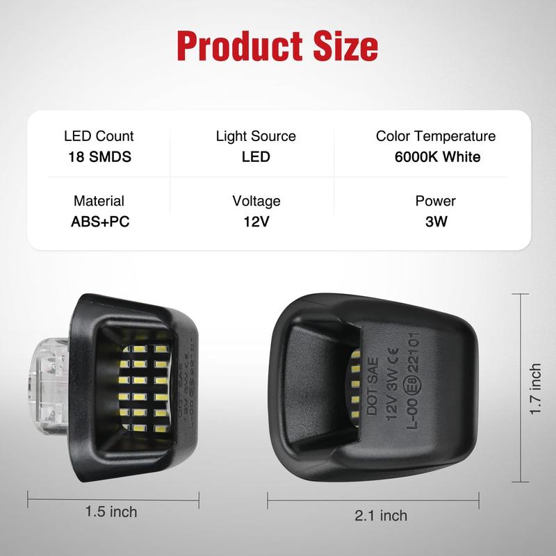 Built-in high power 18 SMD LED chips, super bright 6000k white light output effectively illuminate the license plate.led license plate light ensures that your Nissan & Suzuki license plate tag light remains clearly visible in low light and nighttime conditions.