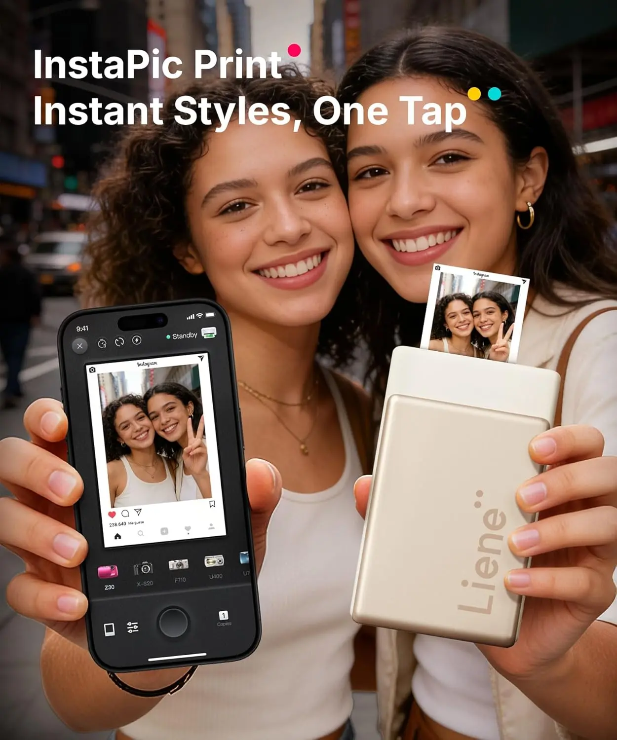 Instantly Shoot & Print with One-Touch Simplicity: Switch to InstaPic Print mode for a true "shoot-and-print" experience, complete with built-in CCD camera filters — perfect for capturing spontaneous moments outdoors or at parties, as it lets you skip the multi-step process of selecting, editing, and printing from your phone album, delivering photos instantly in one seamless flow with Liene 2x3 mini phone printer.