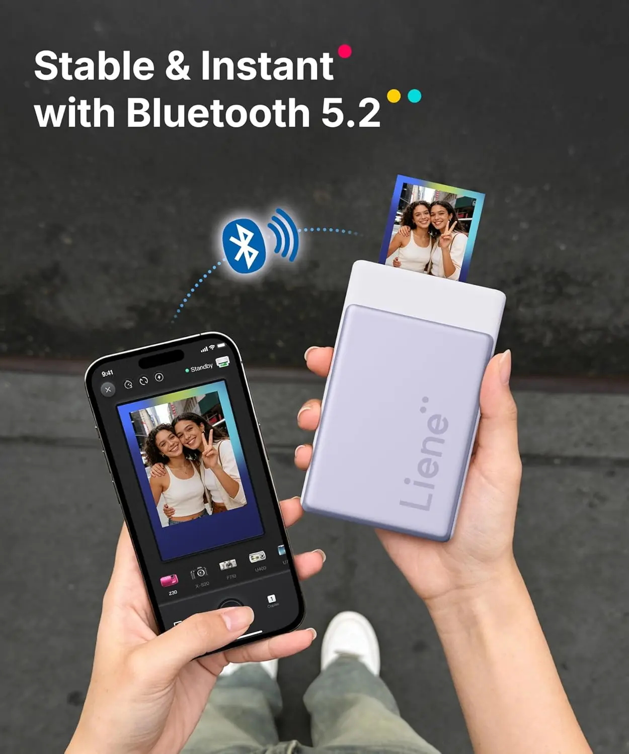 Instantly Shoot & Print with One-Touch Simplicity: Switch to InstaPic Print mode for a true "shoot-and-print" experience, complete with built-in CCD camera filters — perfect for capturing spontaneous moments outdoors or at parties, as it lets you skip the multi-step process of selecting, editing, and printing from your phone album, delivering photos instantly in one seamless flow with Liene 2x3 mini phone printer.