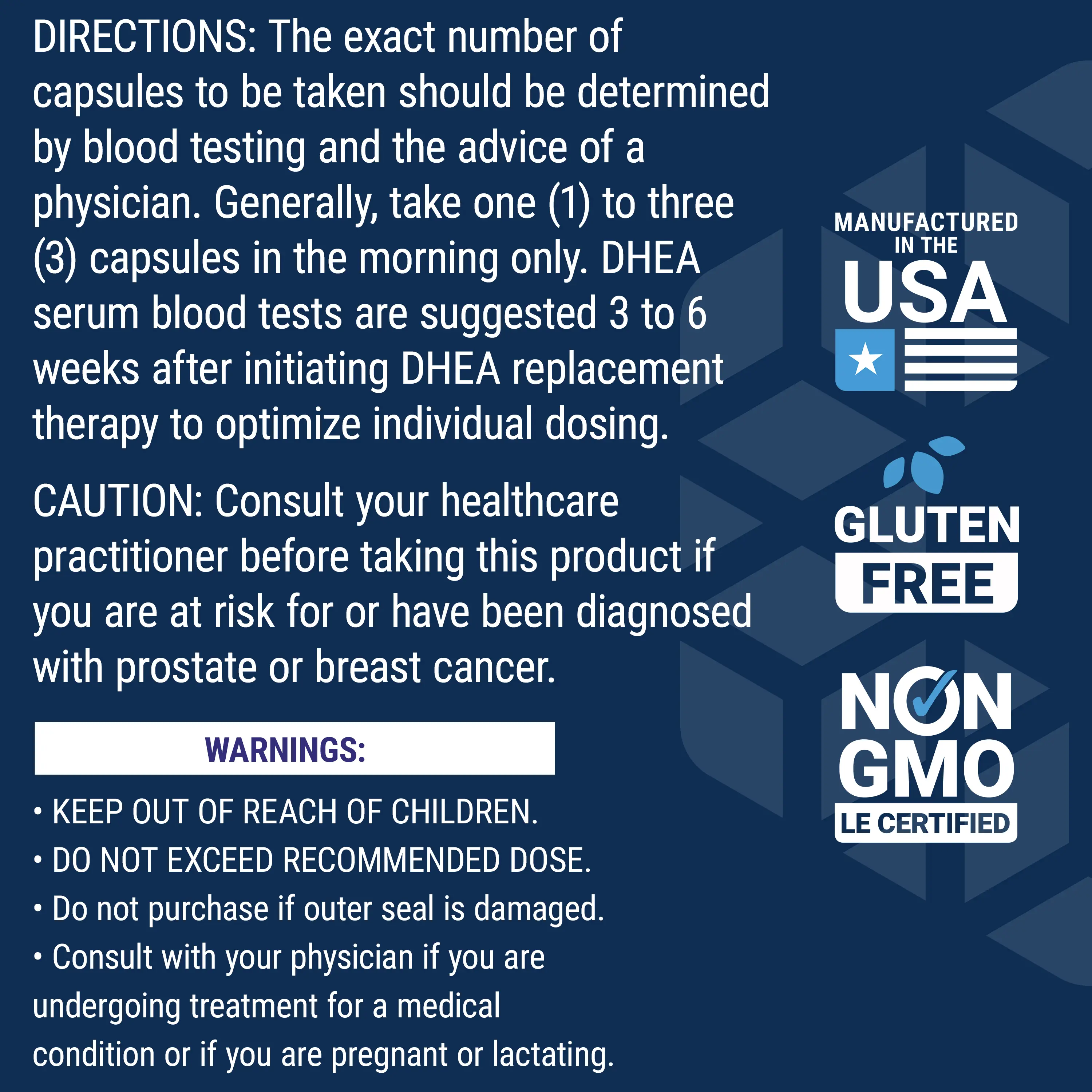 IngredientsDehydroepiandrosterone (DHEA), microcrystalline cellulose, gelatin, silica.