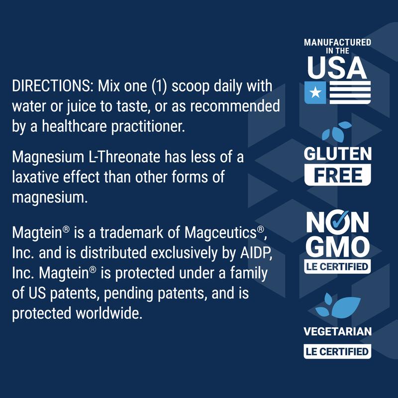 Magnesium L-Threonate powder supports memory and brain health by crossing the blood-brain barrier, potentially enhancing brain function and clarity. Tasty tropical punch flavor to mix with your favorite drink.