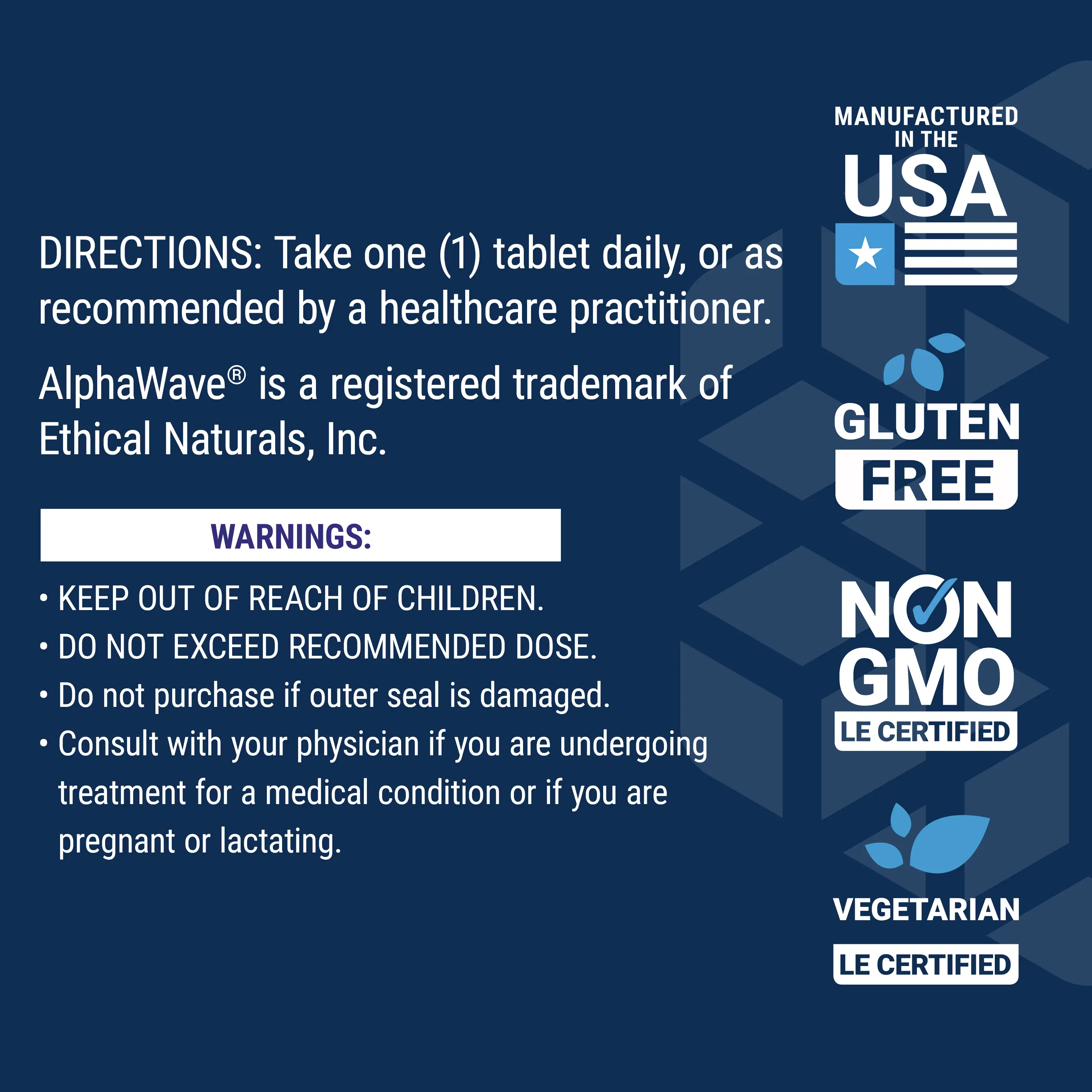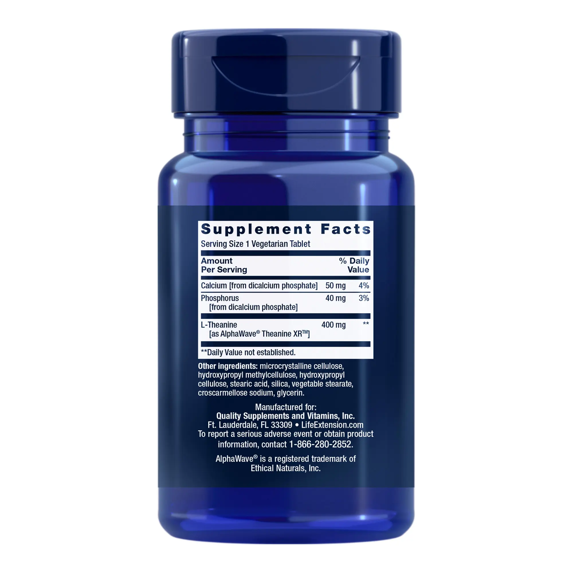 IngredientsCalcium [from dicalcium phosphate] 50 mg Phosphorus [from dicalcium phosphate] 40 mg L-Theanine [as AlphaWave Theanine XR ] 400 mg Other ingredients: microcrystalline cellulose, hydroxypropyl methylcellulose, hydroxypropyl cellulose, stearic acid, silica, vegetable stearate, croscarmellose sodium, glycerin. Non-GMO AlphaWave is a registered trademark of Ethical Naturals, Inc.