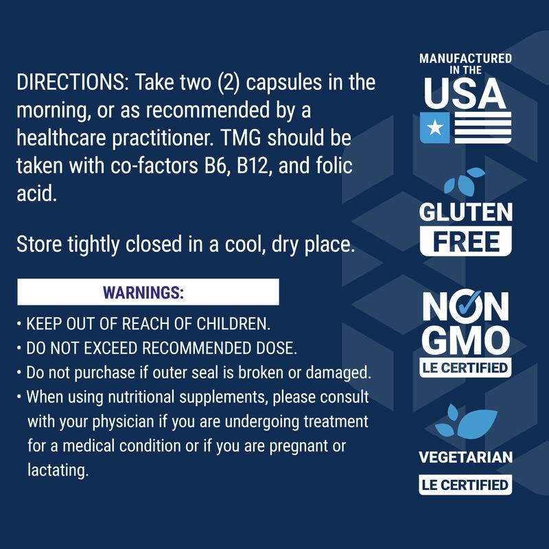 Our TMG supplement -Trimethylglycine - encourages healthy homocysteine levels to support cardiovascular health. TMG (also called glycine betaine) has been associated with beneficial effects on liver function.