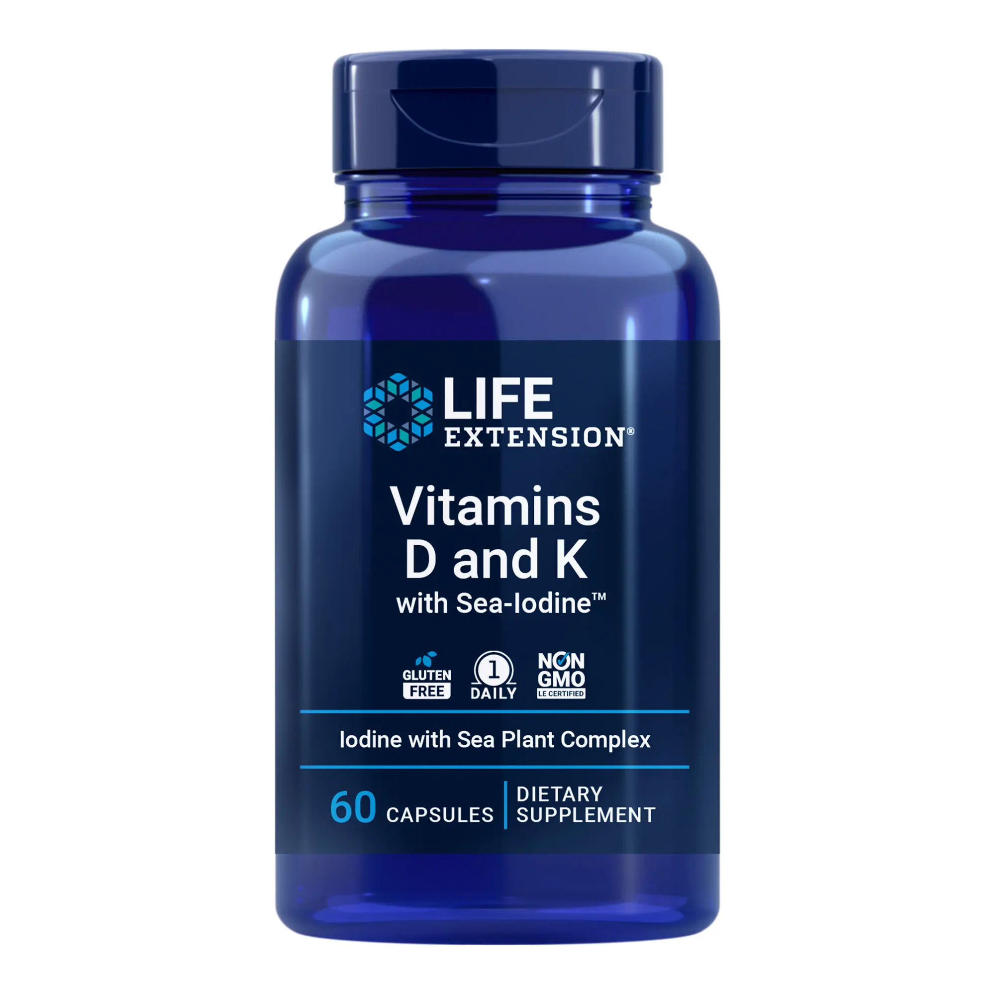 Life Extension Vitamins D and K with Sea-Iodine™ 60 Capsules
