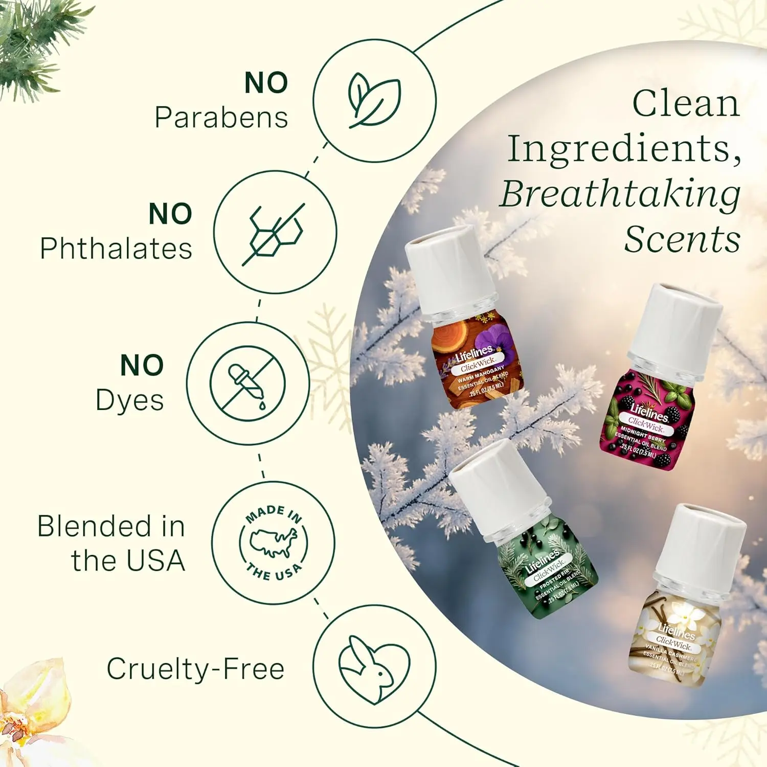 ·Clean Ingredients, Breathtaking Scents: Essential Oil Blends were created for an aroma experience using pure essential oils and botanicals sourced from around the globe. Free from parabens, phthalates, and dyes.