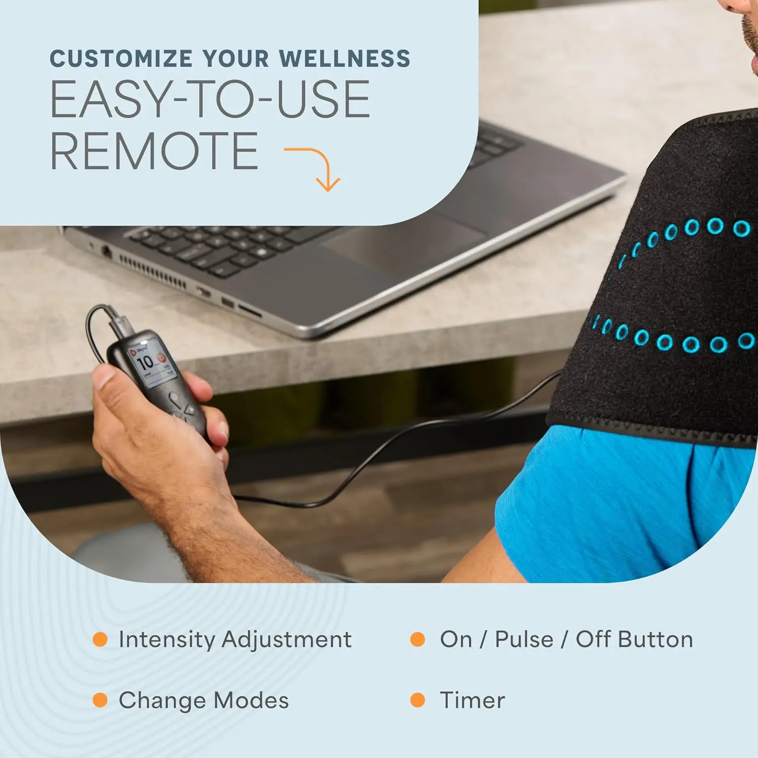 ·Flexible wrap fits waist, back, shoulders, or legs for on-the-go or at-home use