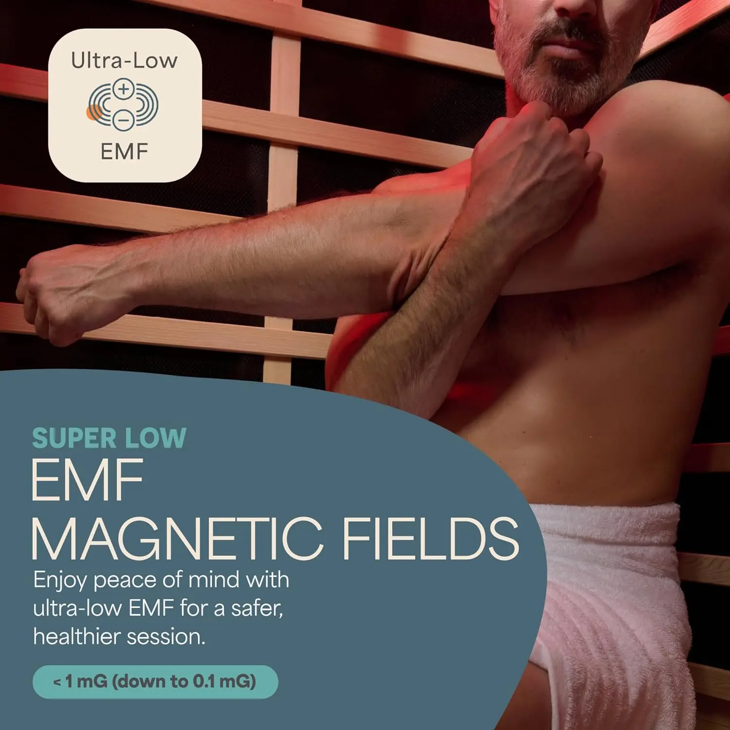 ·Low-EMF far-infrared heating (68°F–140°F)