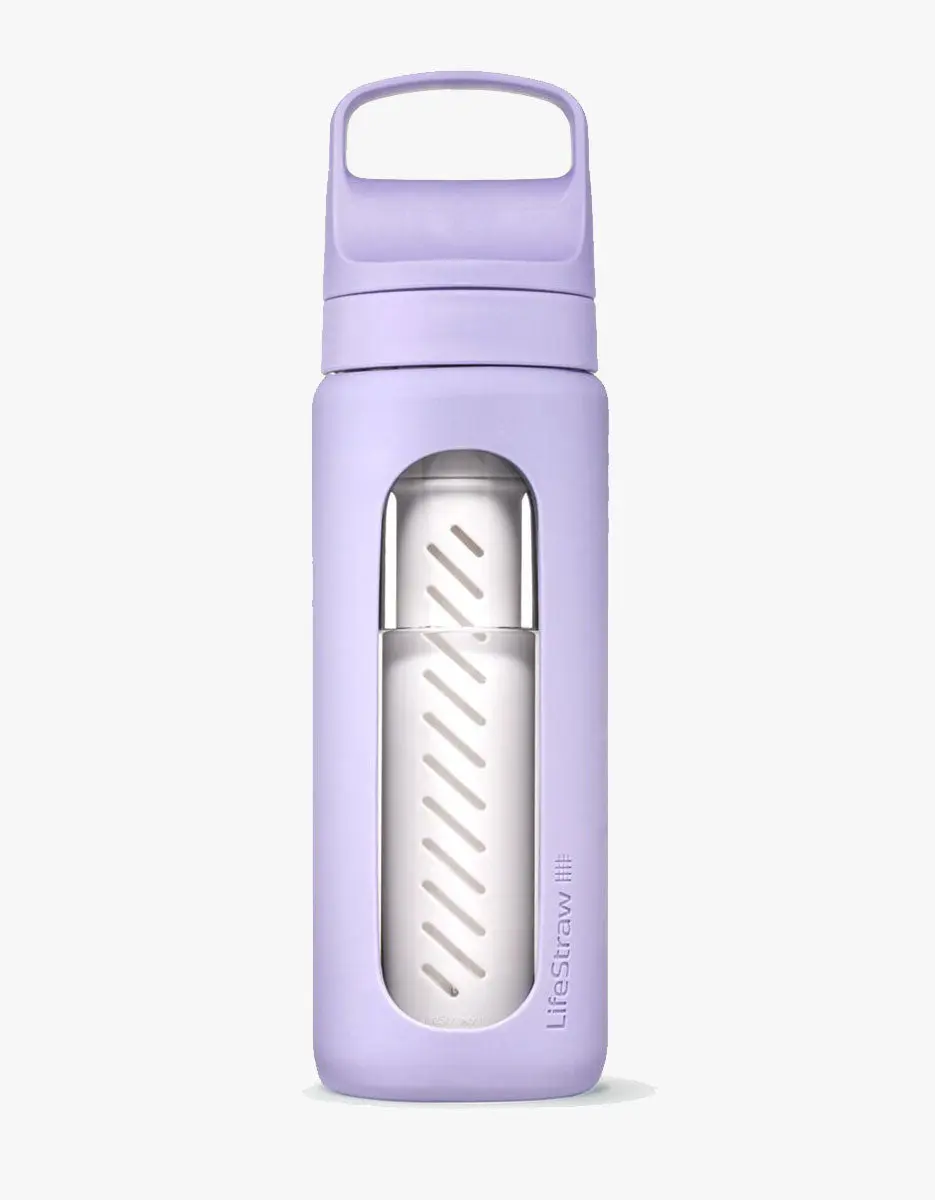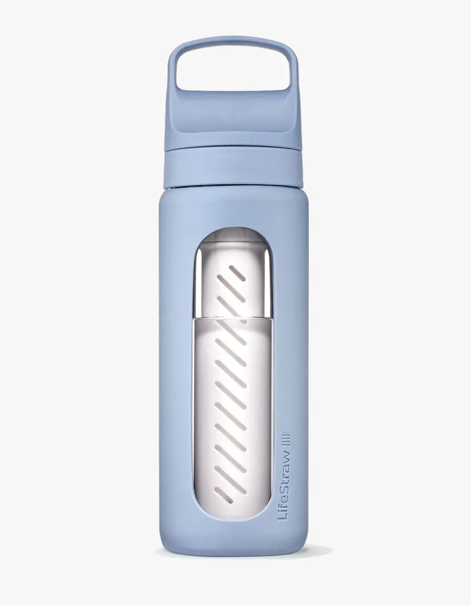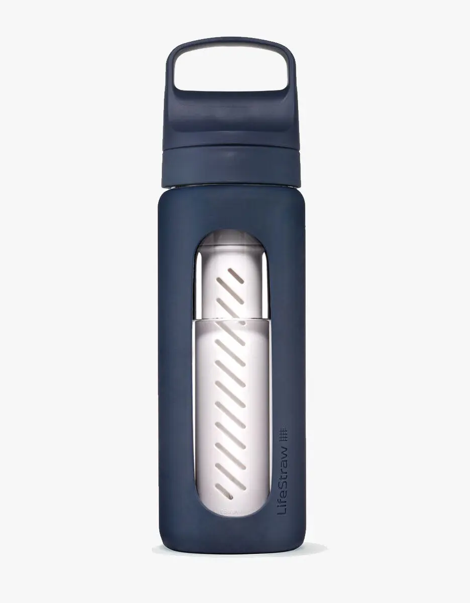 ·INNOVATIVE DESIGN: Borosilicate Glass bottle with included dual water filter