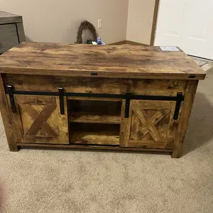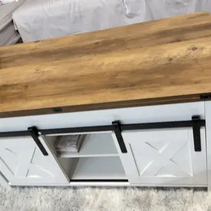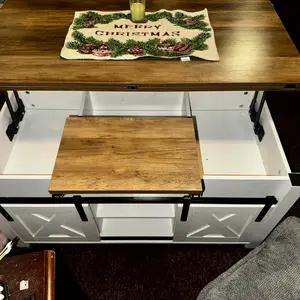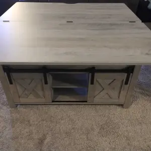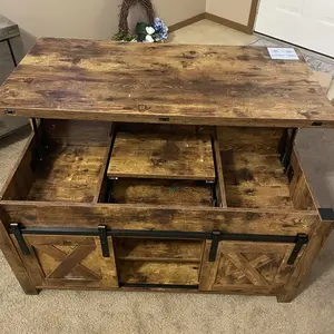 【Large Storage Spaces】Beneath the handy lift-top surface are 3 hidden storage areas that provide you with the perfect spot to stow away any around-home essentials you typically wouldn't want your guests to see. The lower open storage shlef & 2 sliding barn doors can be placed laptop, chess, remote controllers or knick-knack. Keep your living space tidy and organized with this unique feature.