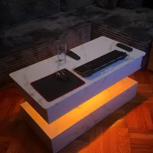 Love this coffee table! Itâs so modern and sleek and the led lights adds a nice touch. The extra storage is super convenient.