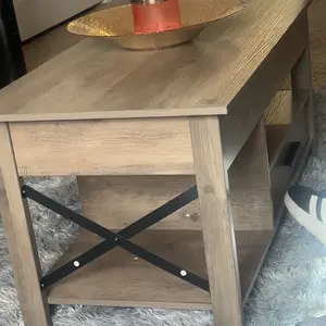 Absolutely love this table. Was looking for something narrow to put in this spot. Found it on Amazon but it was cheaper and faster shipping on this app! Excellent quality and love that I only have to have one cord plugged into the wall. It has an outlet, and a USB and usbC outlet!