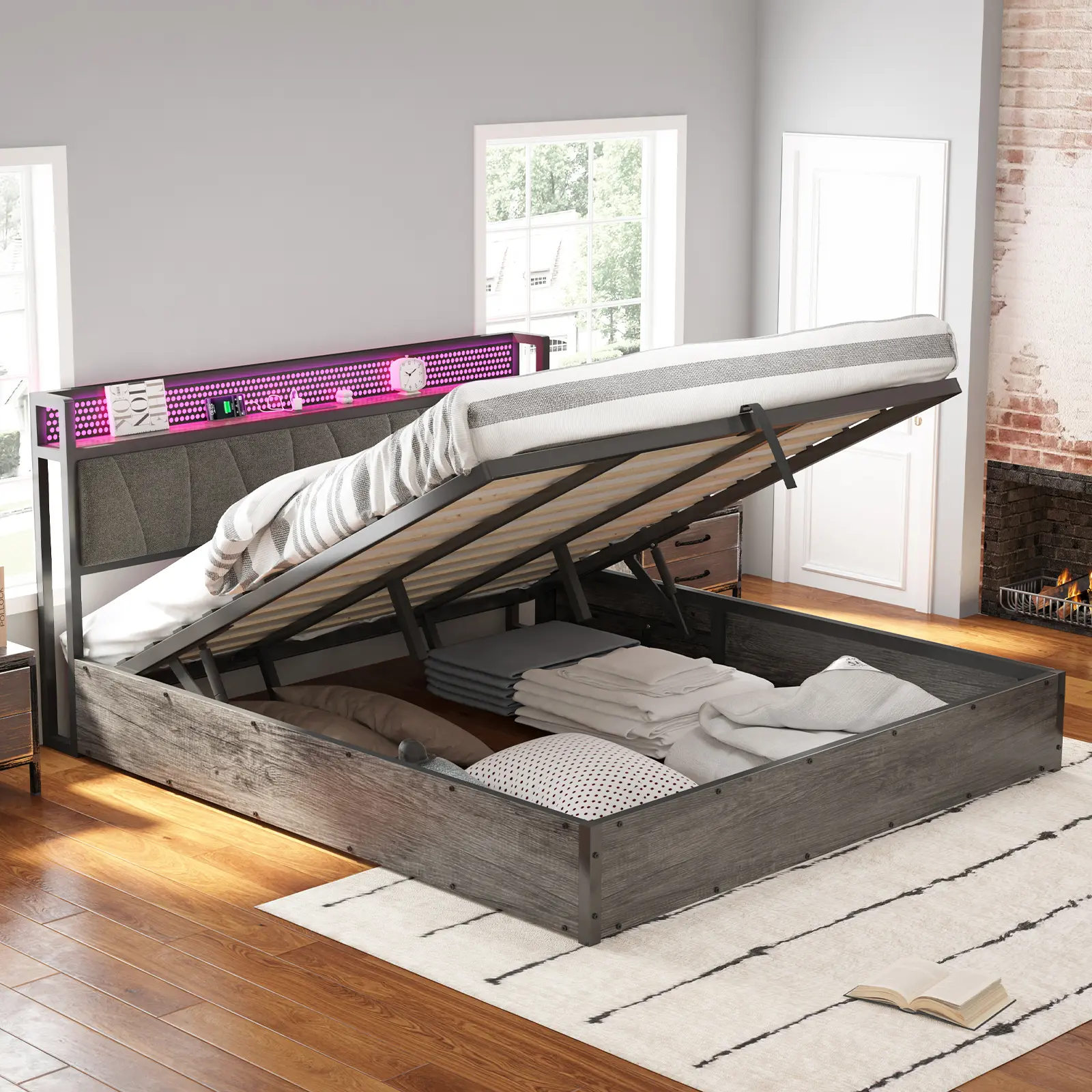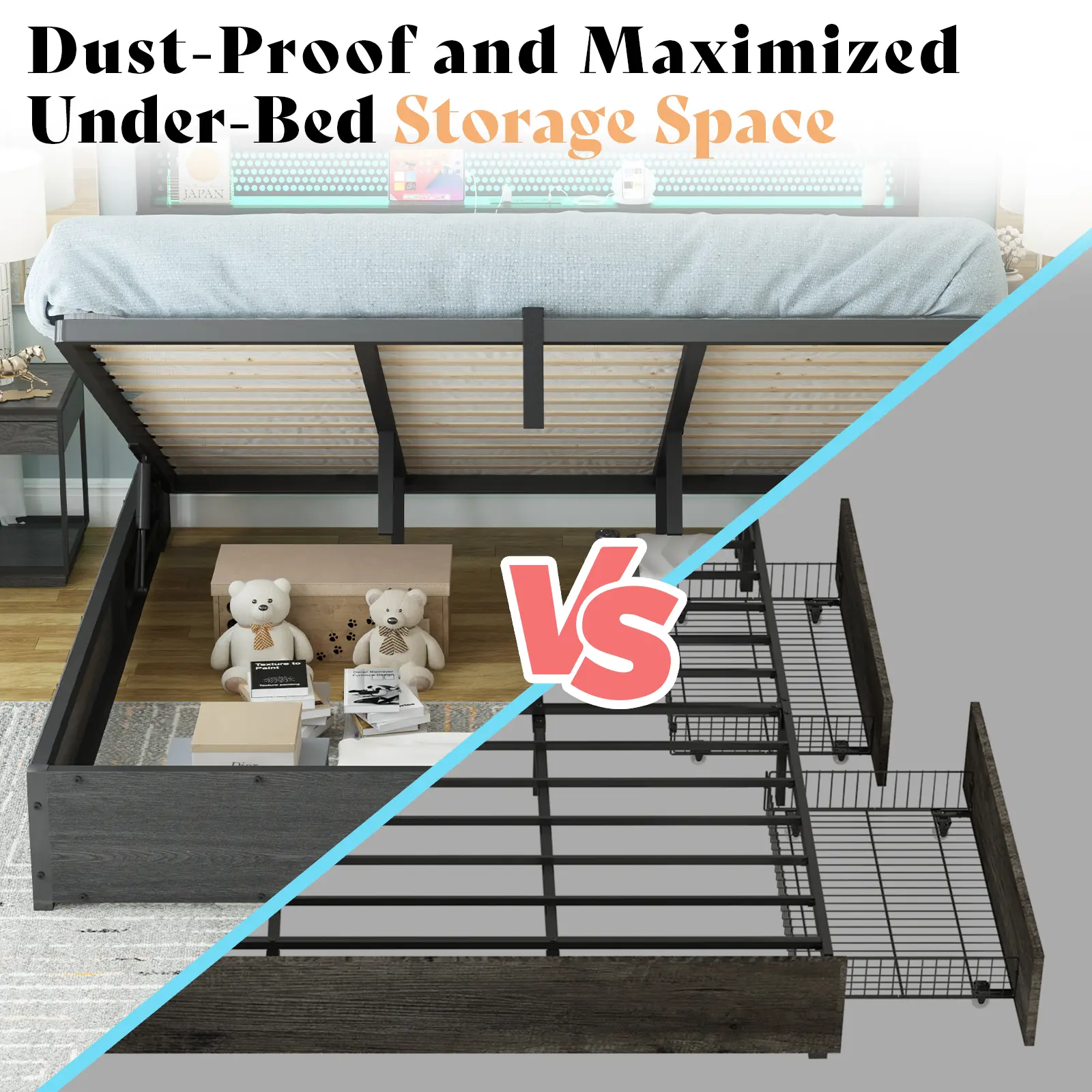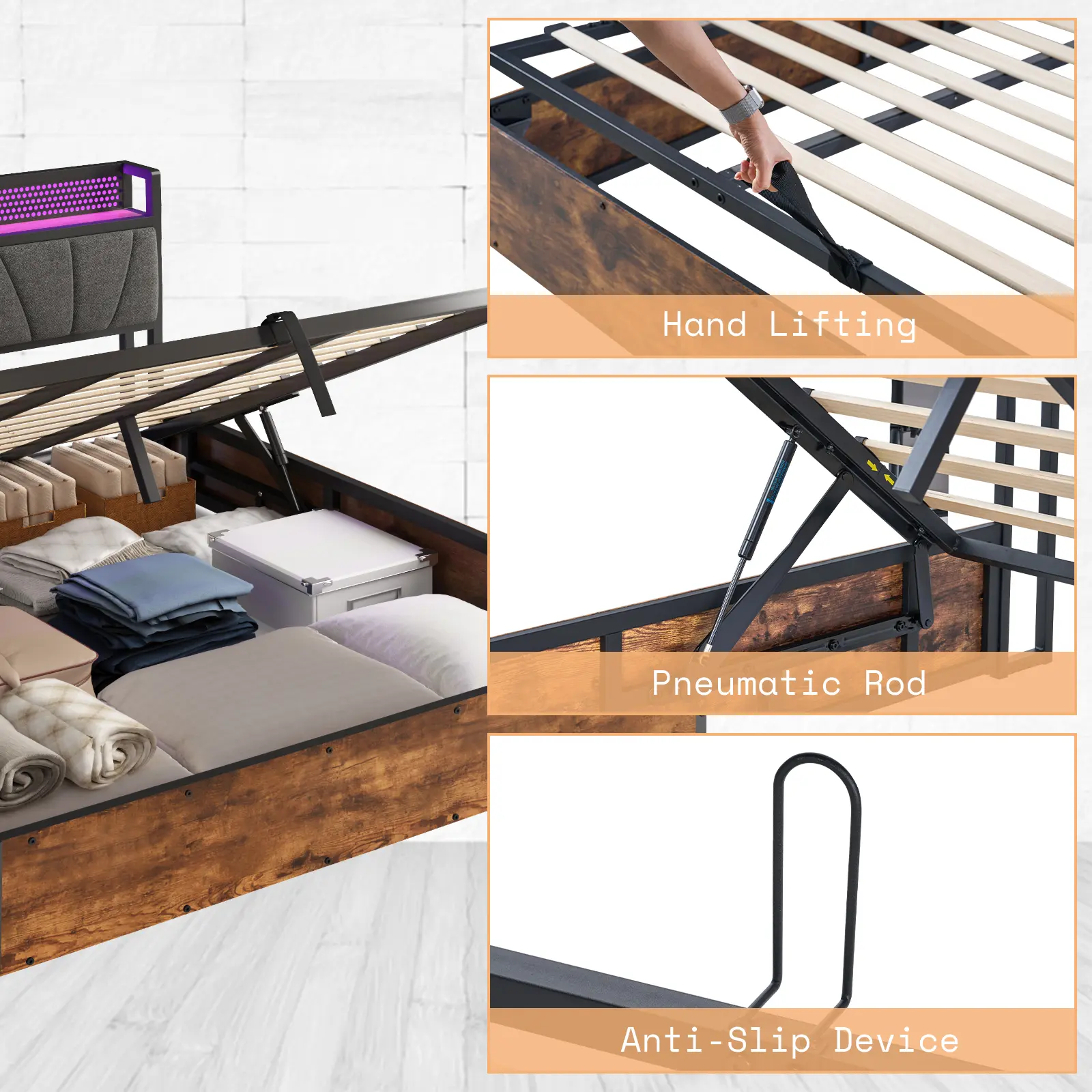 【Effortless Storage】 Gas-lift mechanism makes lifting the bed frame easy, revealing ample under-bed storage space. With mattress anti-slip and fixation devices, keep your belongings organized and secure.