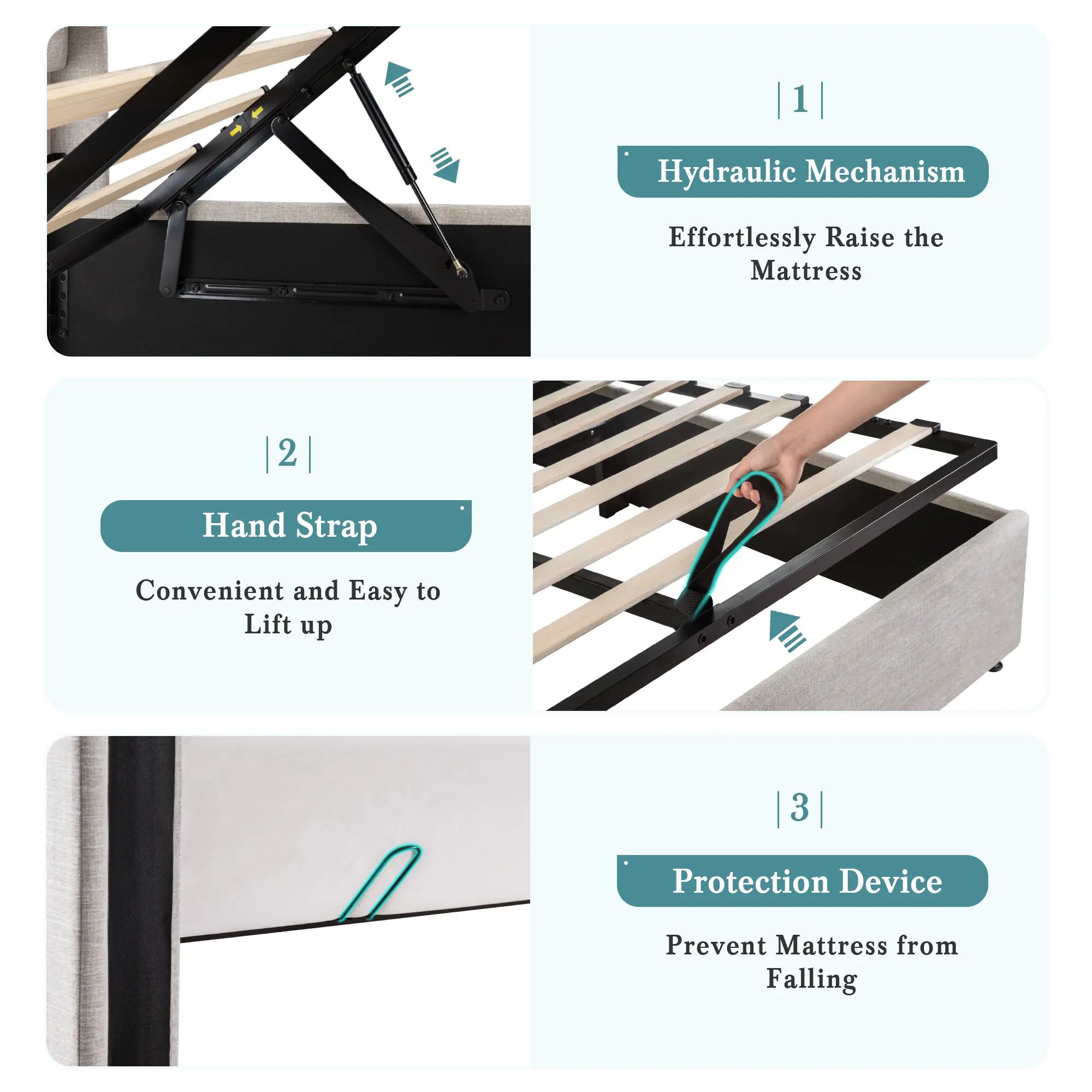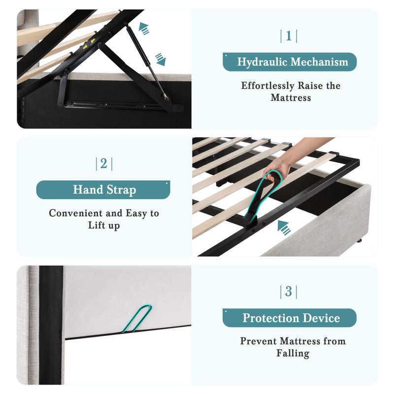 ✨ “I can’t believe how much space I saved with this bed! 🛏️ The hydraulic lift makes it super easy to store blankets, clothes, and more. Plus, it looks modern and elegant in my room 😍 Perfect for small spaces!”