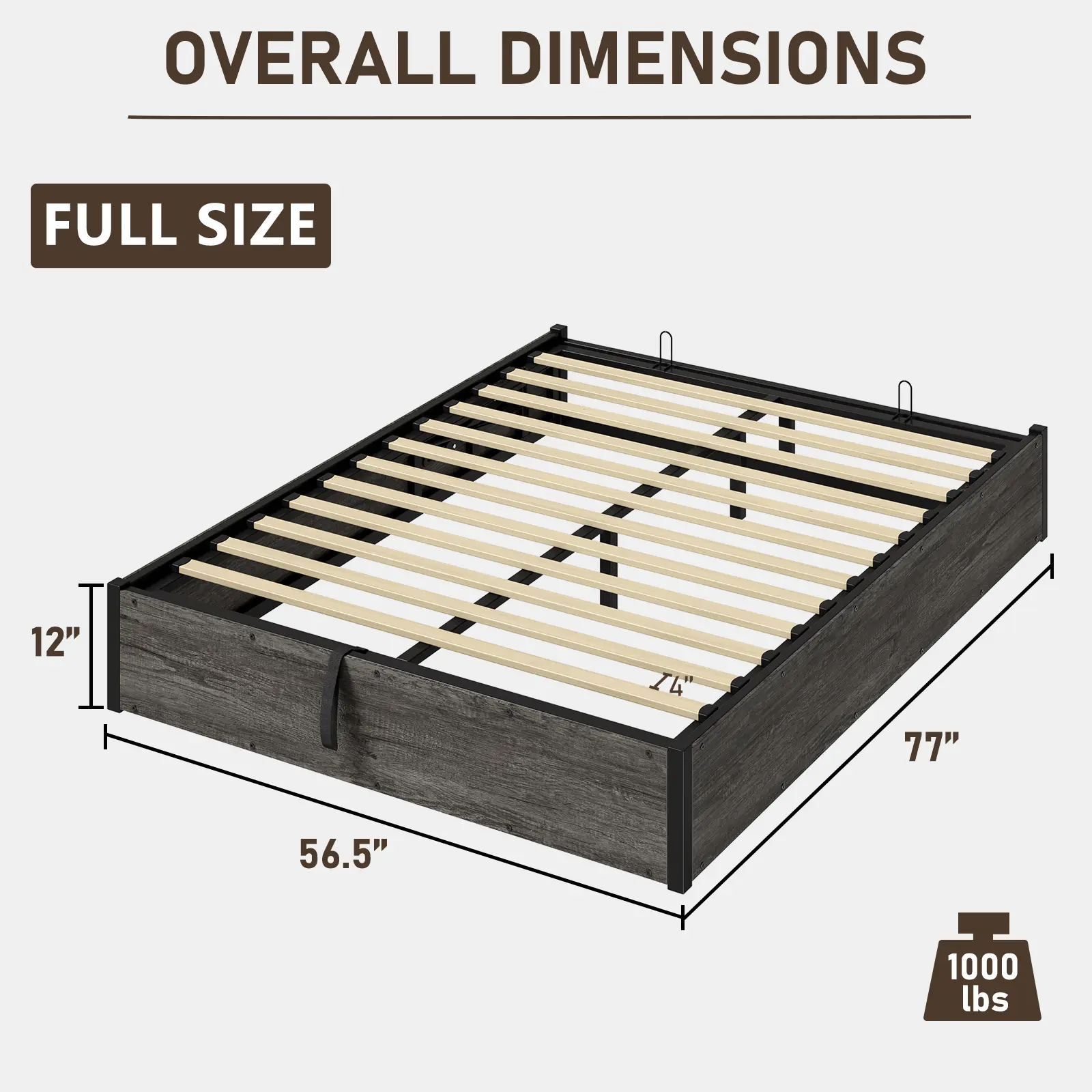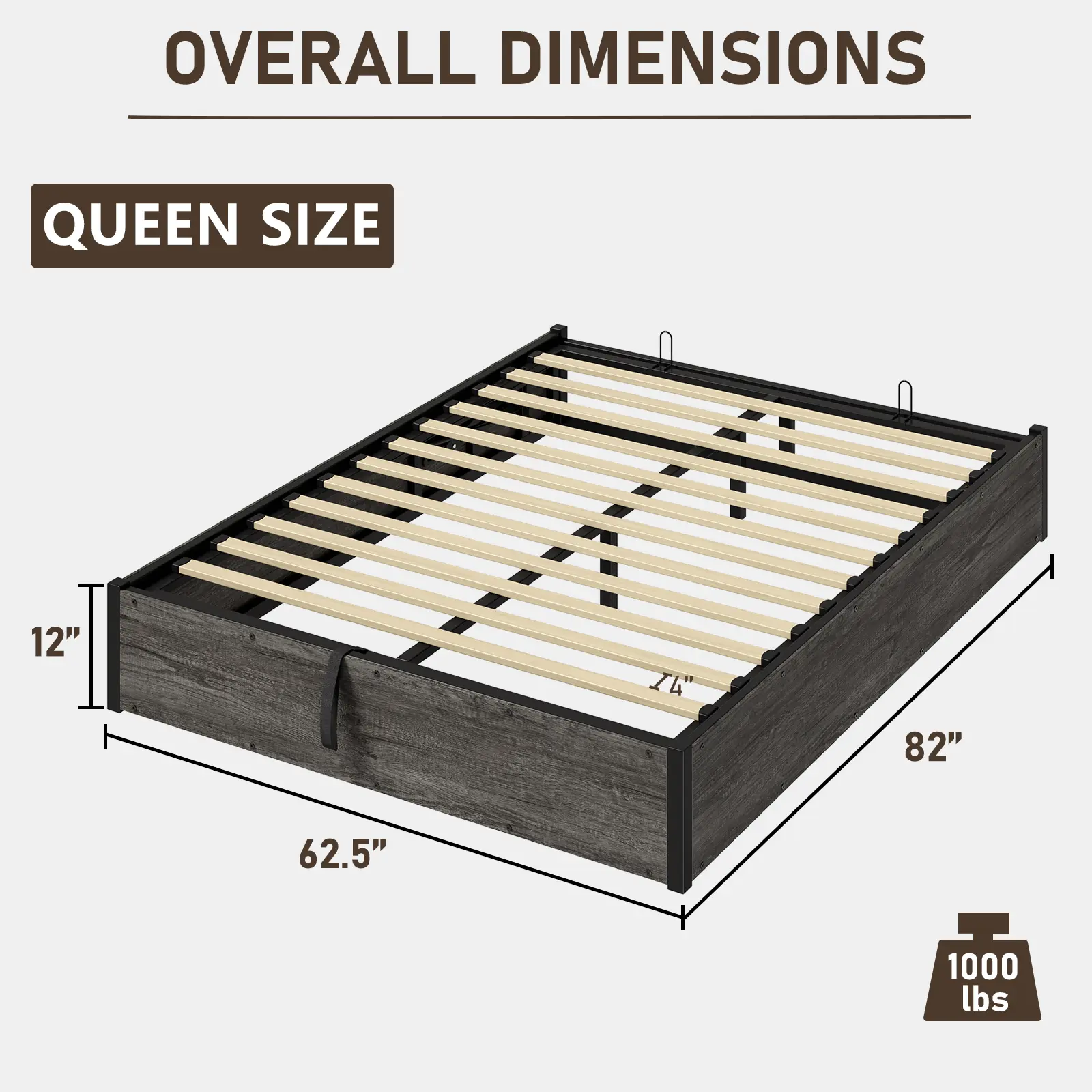 Β·SOLIID & STURDY-Bed frame is made of strong metal structure, 12 high-quality wood slats, provides a solid foundation for the bed, maximum weight capacity of 1000bls, support your mattress perfectly.