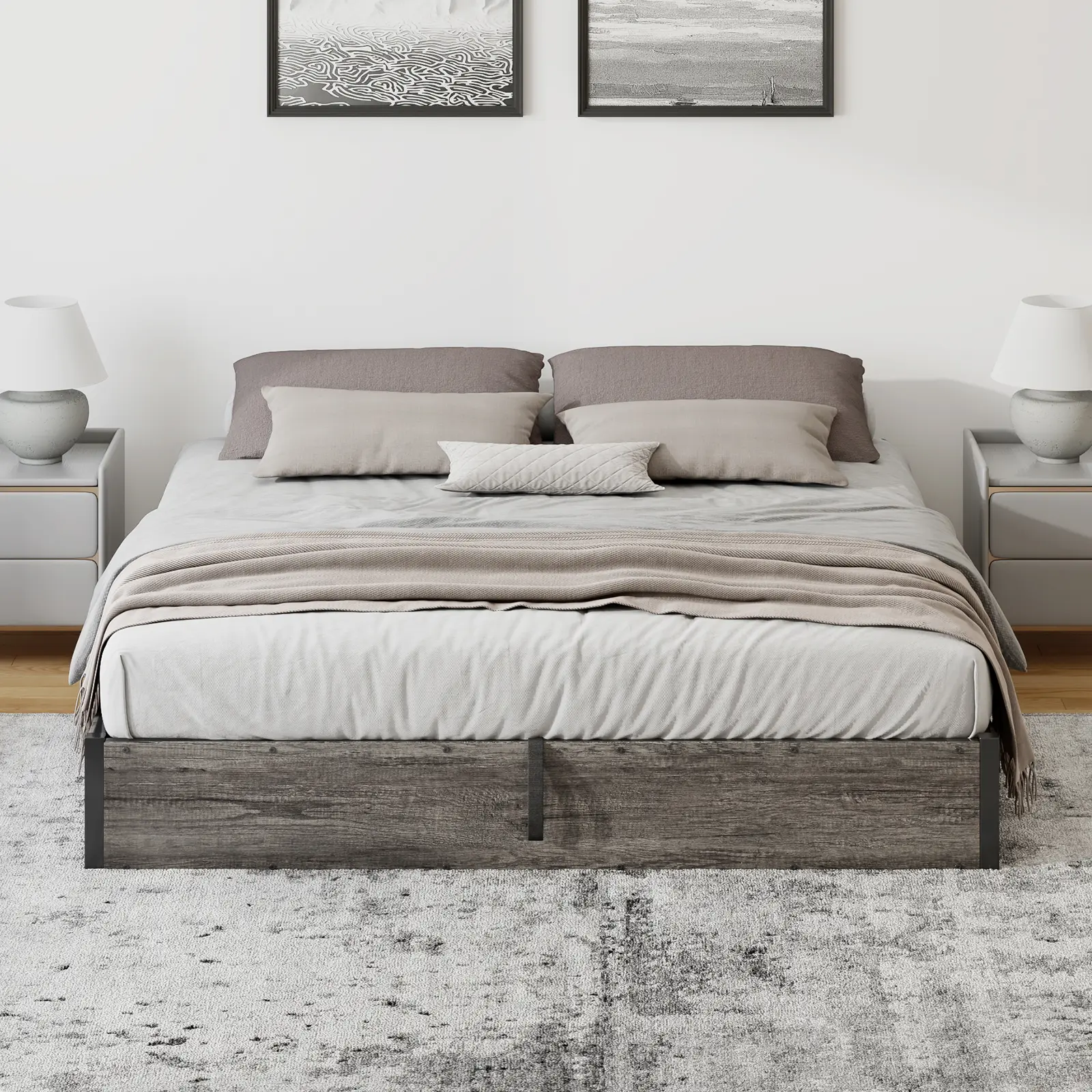 Β·STYLISH MINIMALIST- Featuring a modern industrial style, stylish woodgrain design, smooth line structure, match any of your decorating styles. Offer you a perfect and comfortable resting atmosphere