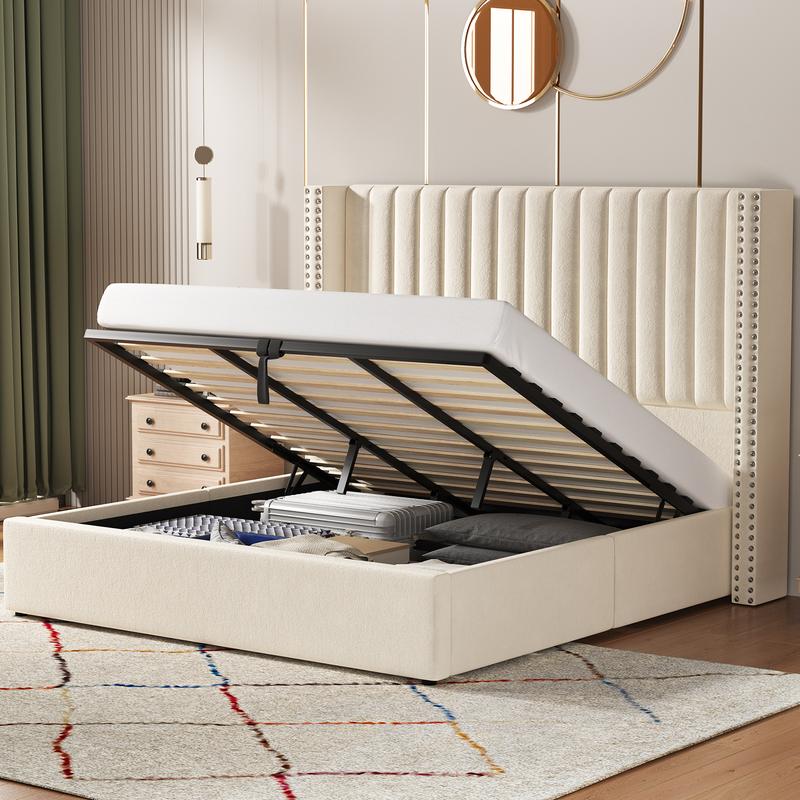 AMERLIFE Bed Frame Lift Up Storage Bed, Velet Upholstered BedFrame with Storage Underneath/No Box Spring Needed/Easy Assembly,Best Gift Ideas/Christmas Gifts