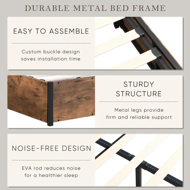 ·Solid and Silent Support: Enjoy a restful night's sleep knowing your mattress is supported by 12 solid wood slats and robust metal construction, eliminating the need for a box spring. Our full bed ensures sturdy and noise-free support, while the non-slip mattress retainer prevents unwanted sliding when the bed is lifted, providing added peace of mind.